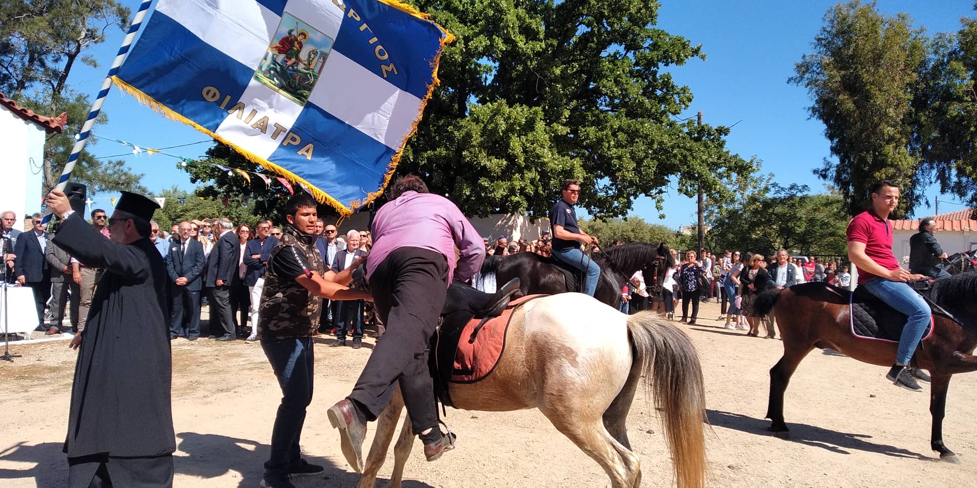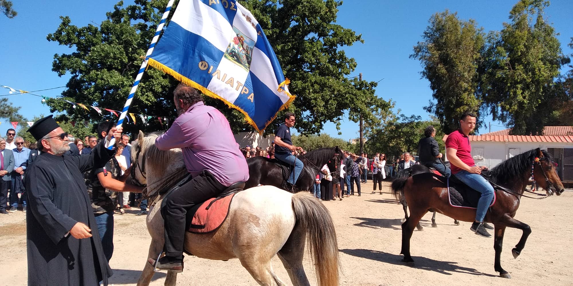 Μετά το πέρας της θείας λειτουργίας ο ιερέας παρέδωσε τη σημαία με τον Άγιο Γεώργιο στους ιππείς που την περιέφεραν στους δρόμους της πόλης. Μετά την επιστροφή έκαναν αγώνες επίδειξης. Στο ιστορικό γεγονός αναφέρθηκε ο Ιωάννης Σακούλας. Παρόντες ο δήμαρχος Τριφυλίας Παναγιώτης Κατσιβελας, ο περιφερειακός σύμβουλος Περικλής Μαντάς, οι υποψήφιοι δήμαρχοι Τριφυλίας Γιώργος Λεβεντάκης, Ευστάθιος Ανδρινόπουλος, Χάιδω Παναγιωτόπουλου, Παναγιώτης Τσίγγάνος και Δημήτρης Δριμής