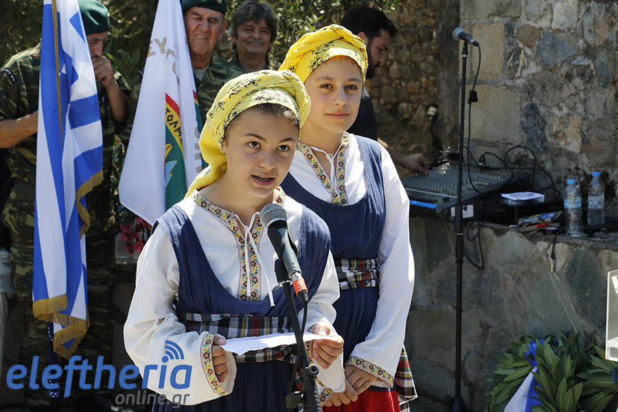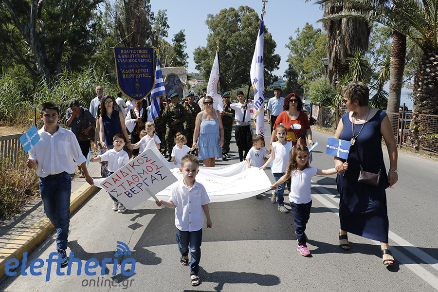 Στη συνέχεια έγινε κατάθεση στεφανιών και τήρηση ενός λεπτού σιγής και έπειτα η διδακτορική ερευνήτρια του τμήματος Ιστορίας, Αρχαιολογίας και Διαχείρισης Πολιτισμικών Αγαθών του Πανεπιστημίου Πελοποννήσου Βάγια Παναγιωτίδη εκφώνησε τον πανηγυρικό. Ακολούθησαν απαγγελίες ποιημάτων από μαθητές και μαθήτριες του Δημοτικού Σχολείου Παραλίας Βέργας, καθώς και απαγγελία ποιήματος από τον συνταξιούχο δάσκαλο Παναγιώτη Ρήγα.