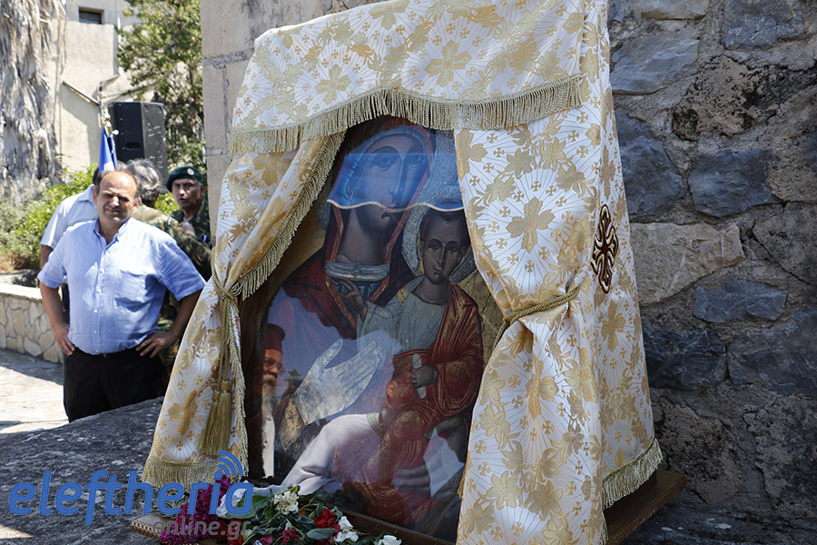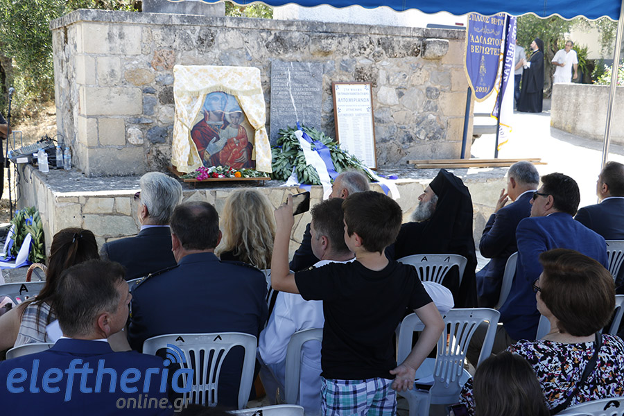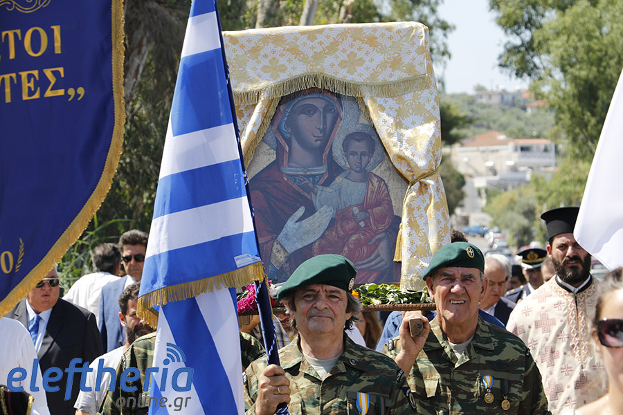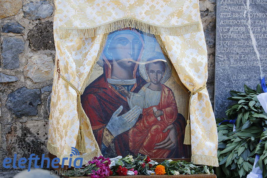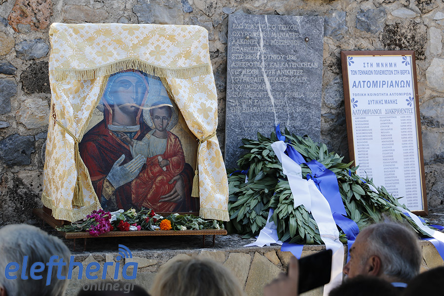 Σήμερα το πρωί τελέστηκε δοξολογία στον ναό του Αγίου Νικολάου στο Αλμυρό χοροστατούντος του μητροπολίτη Μάνης Χρυσοστόμου και στη συνέχεια οι εκπρόσωποι των αρχών, οι λοιποί επίσημοι και ο υπόλοιπος κόσμος συνόδευσαν την πομπή της εικόνας στη θέση Μάνδρα Αλμυρού, από κοινού με τα μέλη του πολεμικού συλλόγου “Κομάντος ’74” όπως και μέλη του Συλλόγου Επτανησίων Μεσσηνίας. Στη θέση αυτή και μπροστά από το ηρώο εψάλη επιμνημόσυνη δέηση.