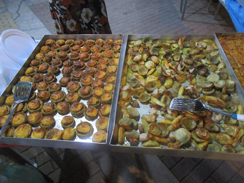 Ο κόσμος απόλαυσε αγκινάρες με κιμά παπουτσάκια και μουσακά, αγκινάρες με λουκάνικο, αυγά και τυρί, αγκινάρες με σκορδαλιά, με πατάτες και κρέας.
