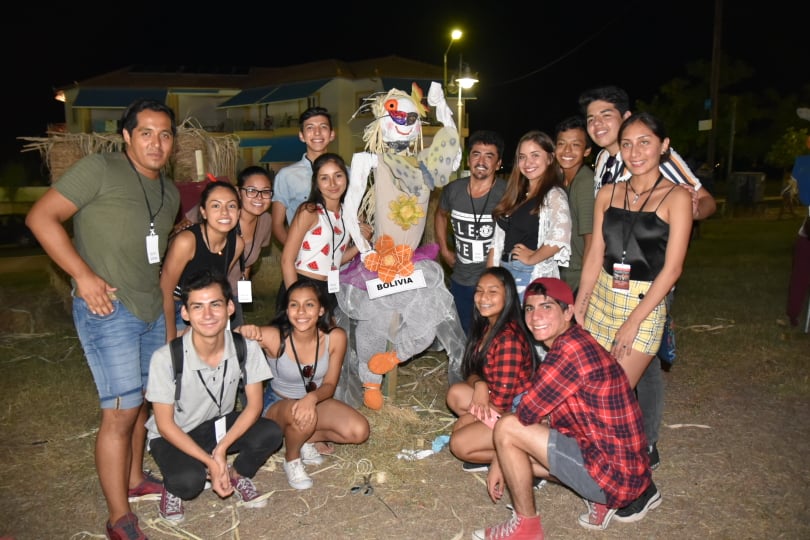 Οι αποστολές από τις δύο χώρες βρέθηκαν στο χώρο της έκθεσης που διοργανώνει ο Μορφωτικός Εκπολιτιστικός Σύλλογος Κυπαρισσίας με το Σύλλογο Νέων Κυπαρισσίας και εκεί με πρόχειρα υλικά έφτιαξαν δύο σκιάχτρα ένα η κάθε αποστολή με έντονα τα στοιχεία από τον πολιτισμό της χώρας τους.