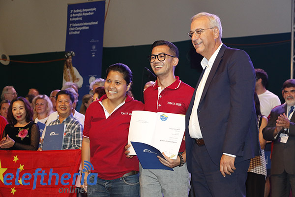 Το βράδυ του Σαββάτου διοργανώθηκε τελετή βραβεύσεων στο Κλειστό Γυμναστήριο της Τέντας, στην οποία η διεθνής κριτική επιτροπή απένειμε 28 χρυσά, 14 ασημένια και 2 χάλκινα διπλώματα στις χορωδίες που ξεχώρισαν κατά την διάρκεια του φεστιβάλ.