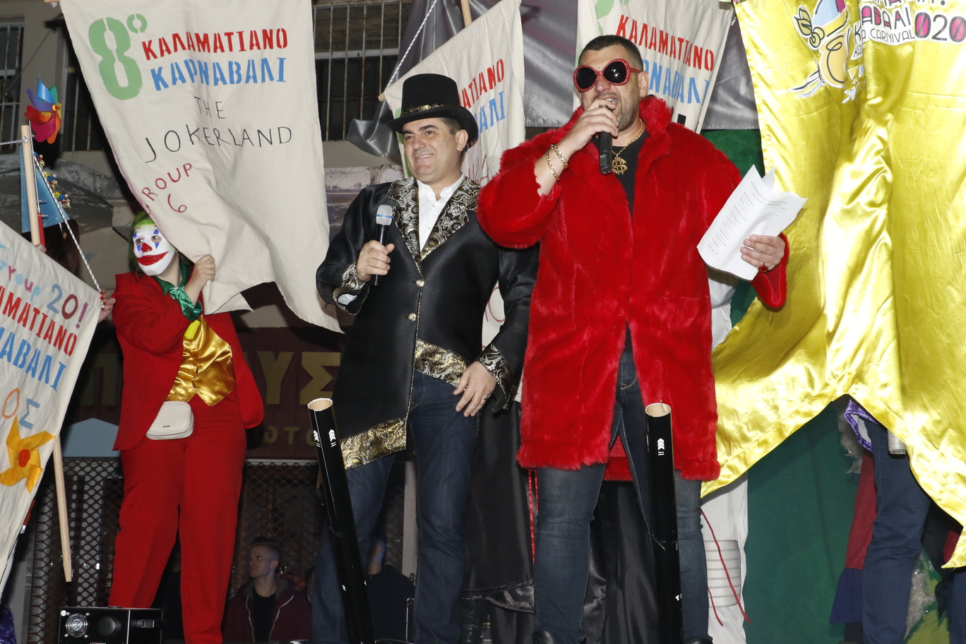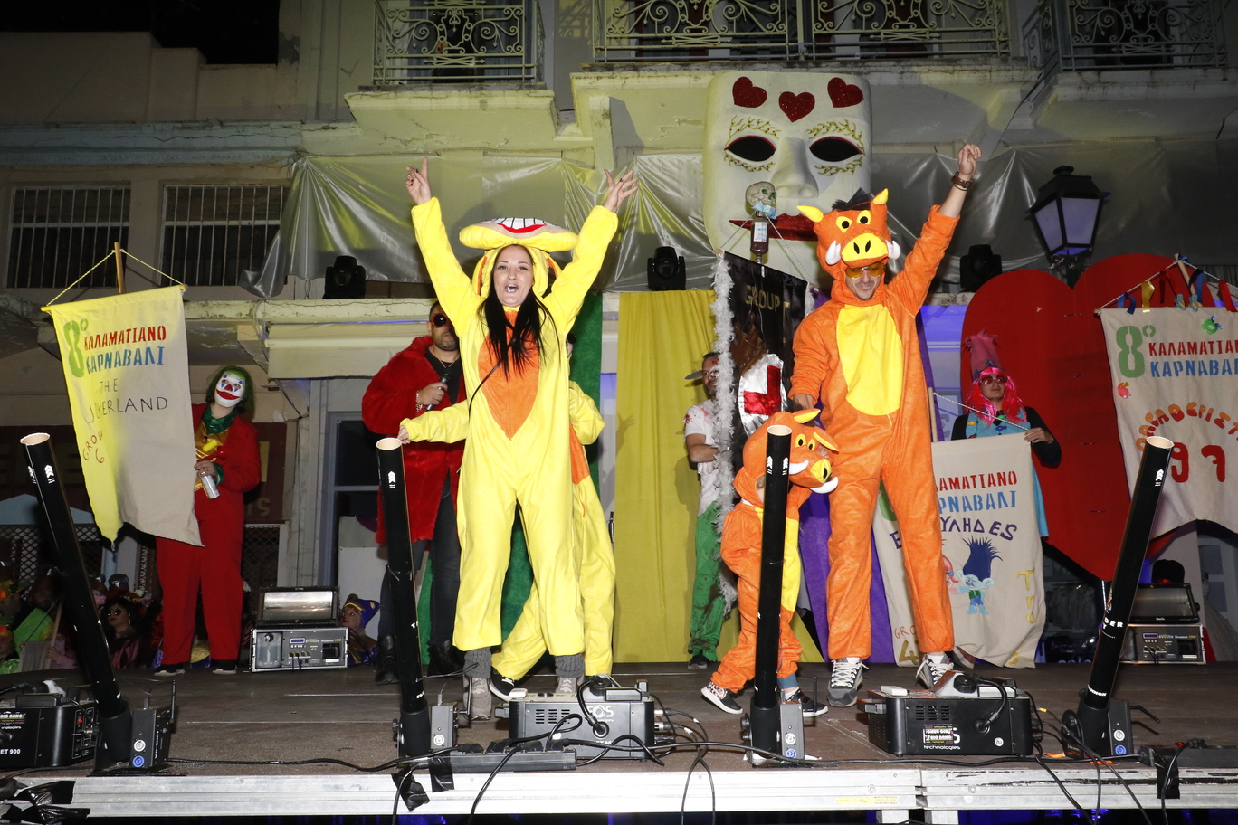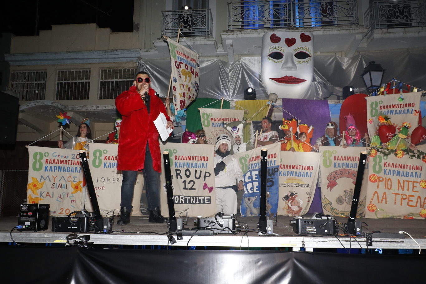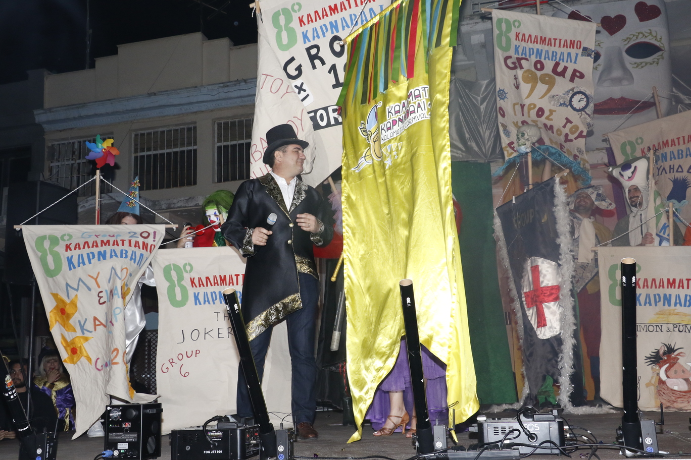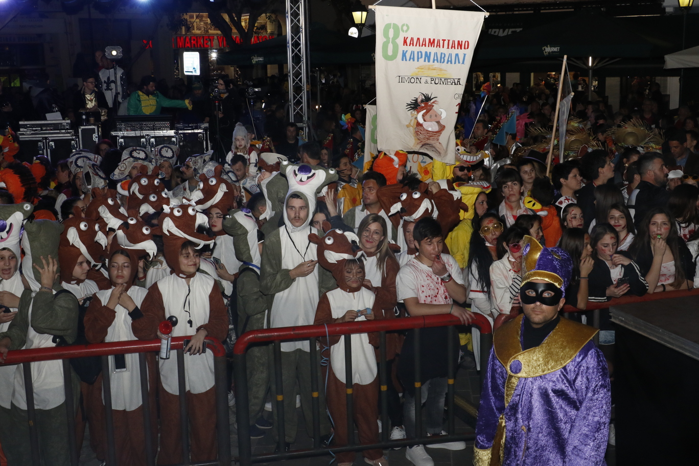 Τα εκατοντάδες μέλη των καρναβαλικών γκρουπ μαζί με πλήθος κόσμου γέμισαν την πλατεία 23ης Μαρτίου, όπου ο δήμαρχος Καλαμάτας Θανάσης Βασιλόπουλος κήρυξε την έναρξη της φετινής διοργάνωσης, ενώ ο ουρανός της Καλαμάτας φωτίστηκε από πυροτεχνήματα.