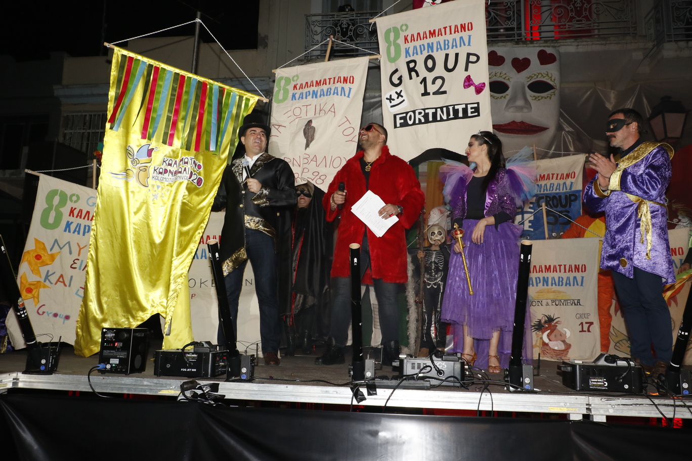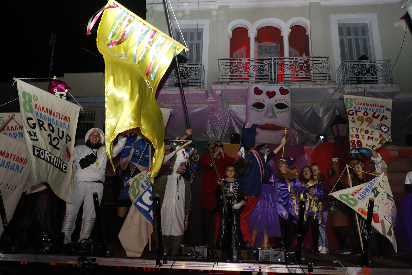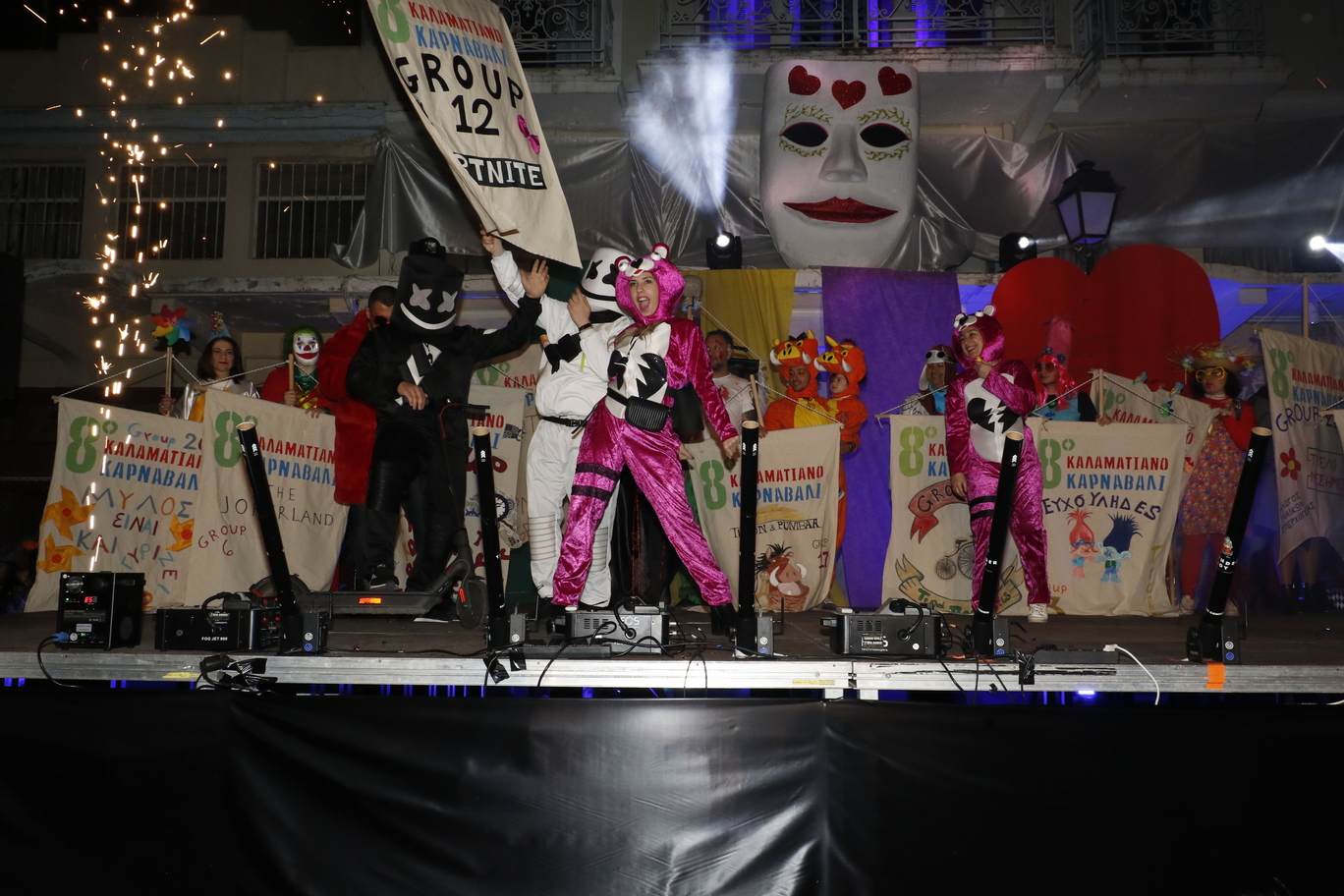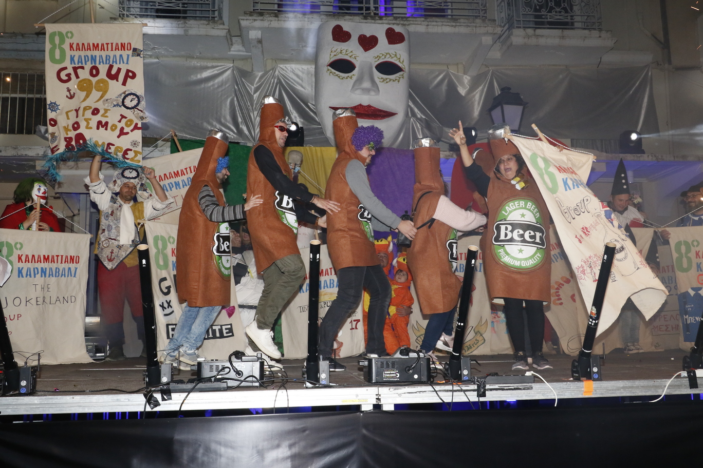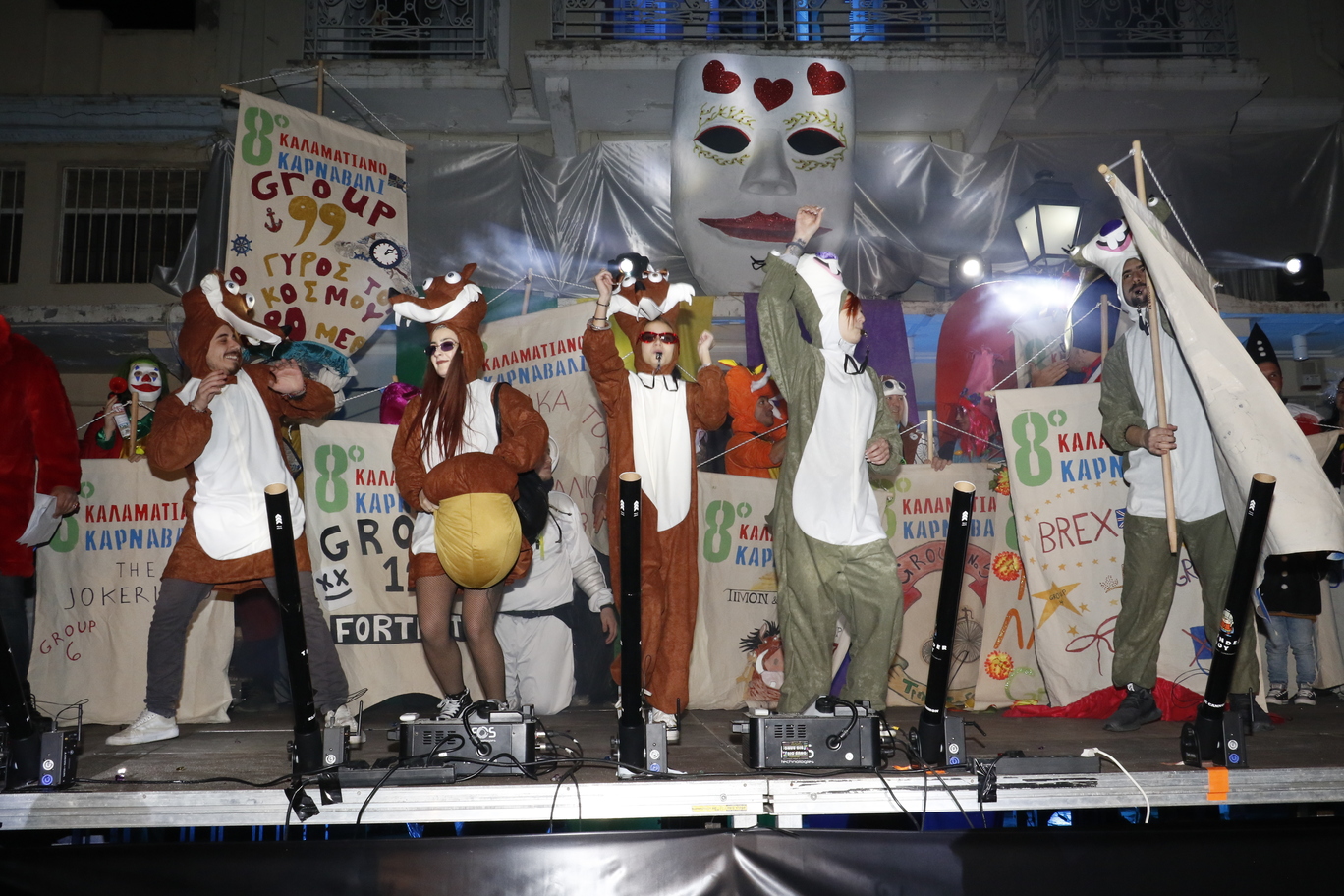 Τα εκατοντάδες μέλη των καρναβαλικών γκρουπ μαζί με πλήθος κόσμου γέμισαν την πλατεία 23ης Μαρτίου, όπου ο δήμαρχος Καλαμάτας Θανάσης Βασιλόπουλος κήρυξε την έναρξη της φετινής διοργάνωσης, ενώ ο ουρανός της Καλαμάτας φωτίστηκε από πυροτεχνήματα.