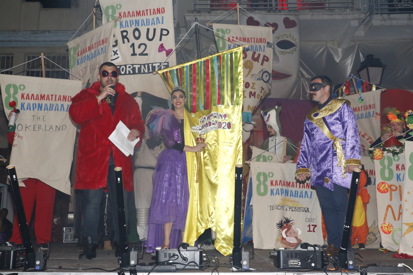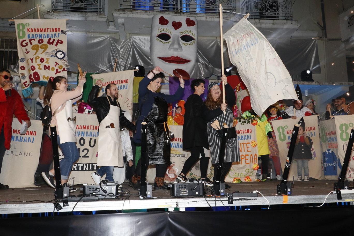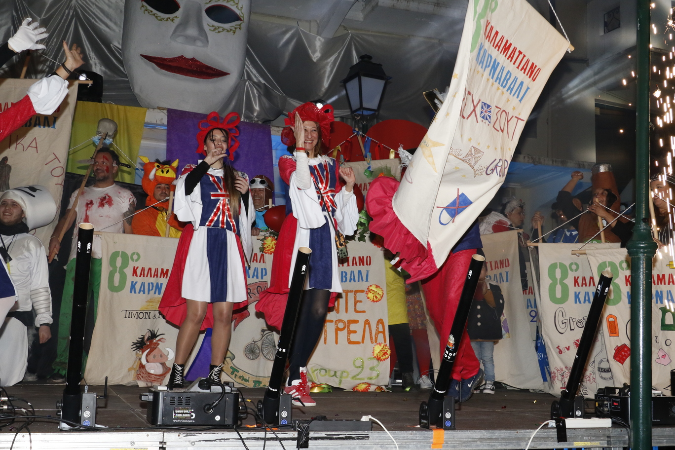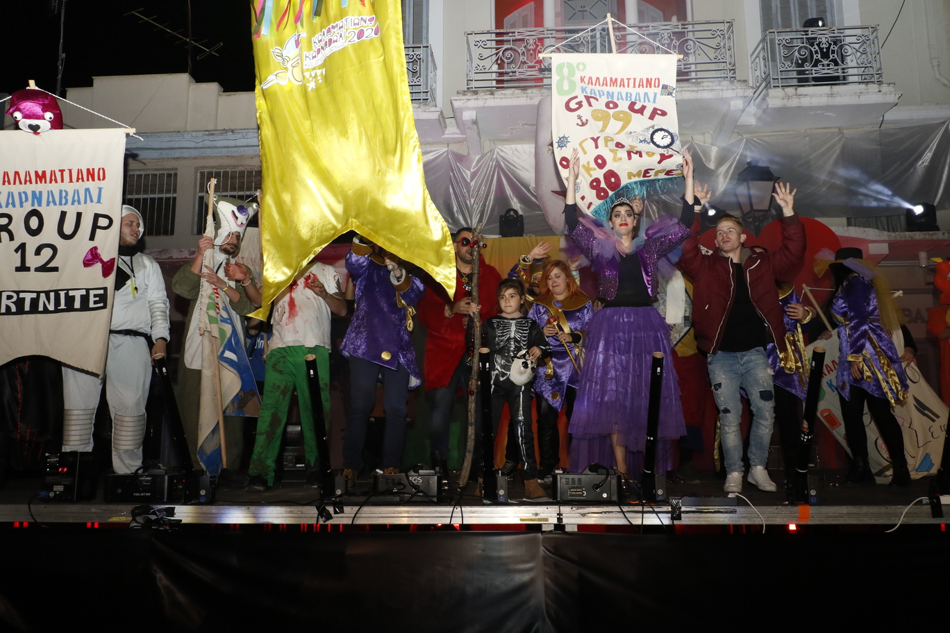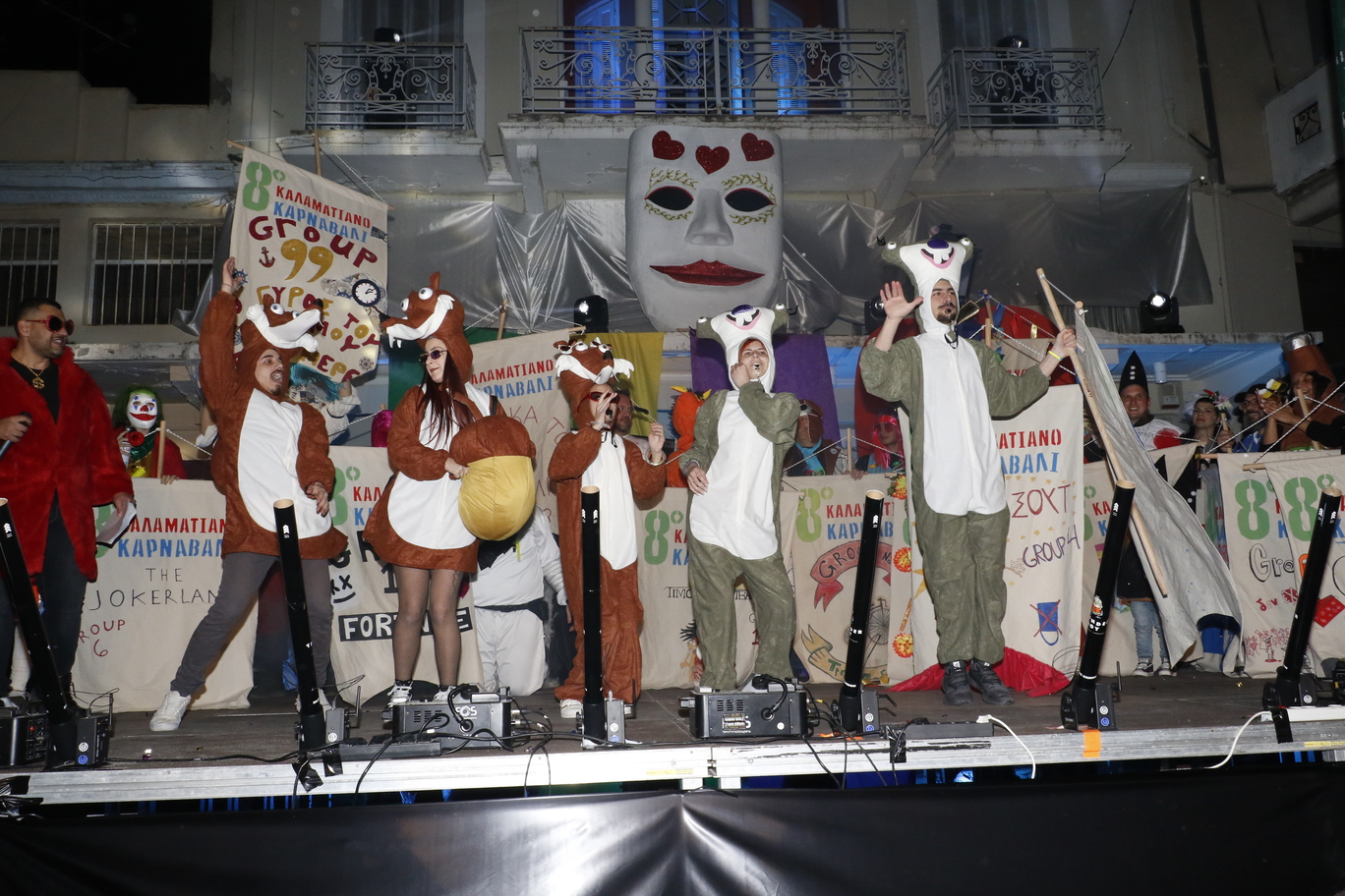 Τα εκατοντάδες μέλη των καρναβαλικών γκρουπ μαζί με πλήθος κόσμου γέμισαν την πλατεία 23ης Μαρτίου, όπου ο δήμαρχος Καλαμάτας Θανάσης Βασιλόπουλος κήρυξε την έναρξη της φετινής διοργάνωσης, ενώ ο ουρανός της Καλαμάτας φωτίστηκε από πυροτεχνήματα.