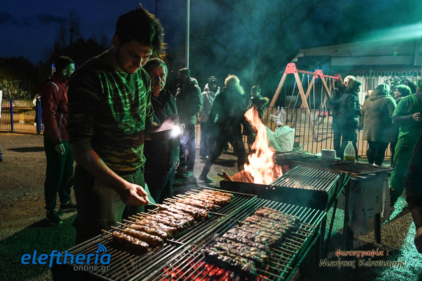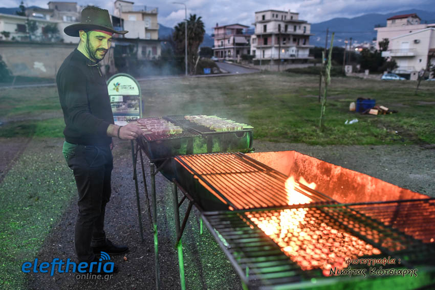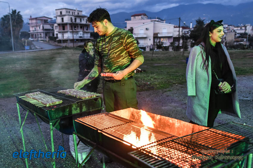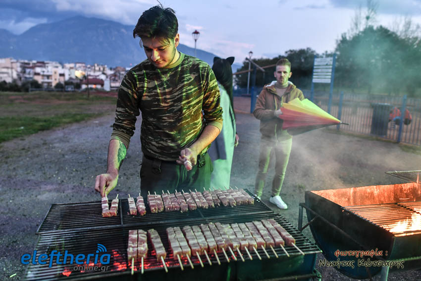 Σε αυτή τη γειτονιά της Καλαμάτας συγκεντρώθηκαν παρέες και τίμησαν το έθιμο ψήνοντας και διασκεδάζοντας με τον δικό τους τρόπο.