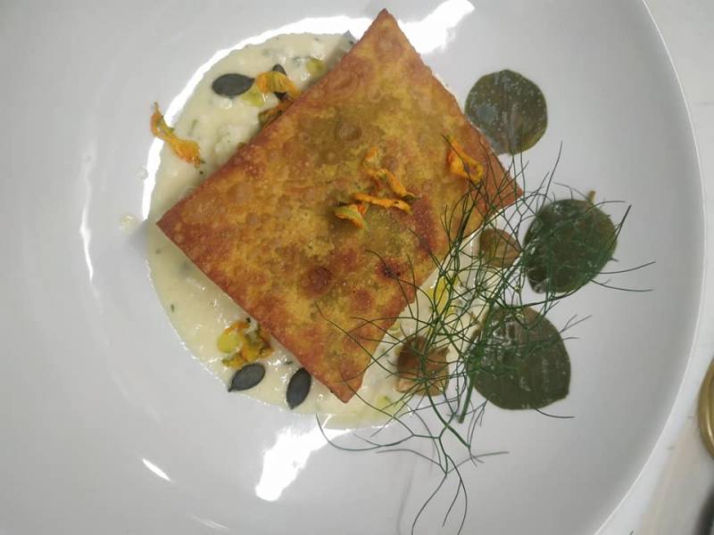 Χαρακτηριστικά αναφέρει: "Μας ζήτησαν να κάνουμε κάτι δημιουργικό. Έτσι φτιάξαμε σκαλτσούνια με κορφάδες, κρέμα φέτας και κάπαρη από την Παλιόχωρα."