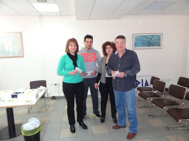 Η διοίκηση και το προσωπικό της "Ελευθερίας" έκοψαν την πίτα τους στα γραφεία της εφημερίδας. Τα φλουριά έπεσαν στο Στάθη Βρεττό, στην Κωνσταντίνα Τριανταφυλλάκη και στο Γιάννη Γαρατζιώτη.