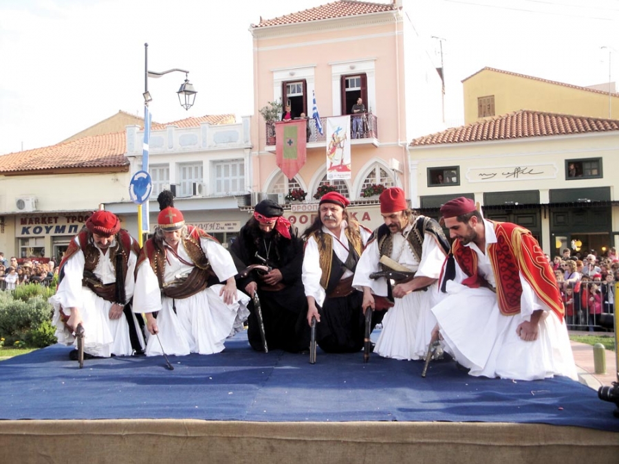 Αφηγητής θα είναι ο Δημήτρης Ηλιόπουλος. Στις 5 το απόγευμα ξεκινά η παρέλαση μαθητών σχολείων, οπλαρχηγών και μπουλουκιών.