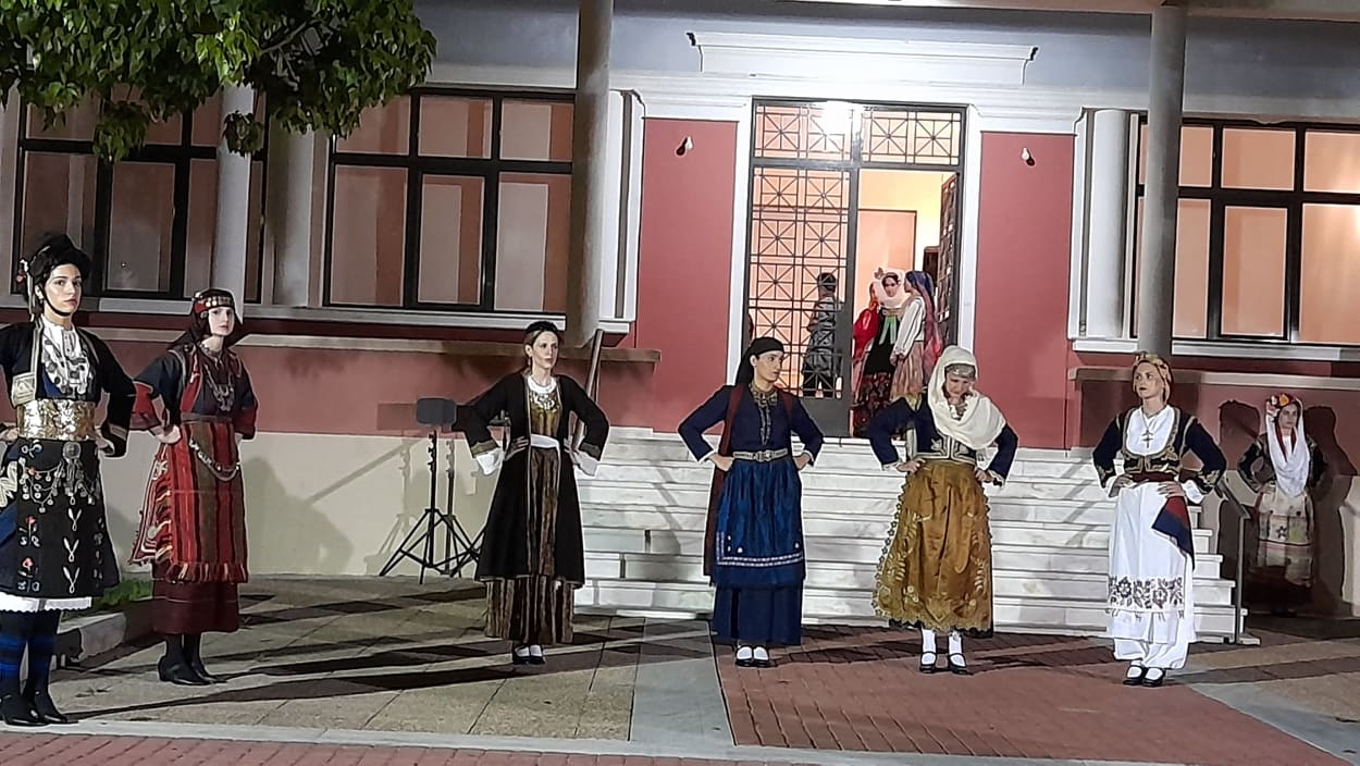 Η παρουσίαση των αυθεντικών γυναικείων φορεσιών και κοσμημάτων εποχής από το Θέατρο Δόρα Στράτου, έγινε από τα μέλη του Χορευτικού Τμήματος του Μορφωτικού Συλλόγου Γαργαλιάνων.