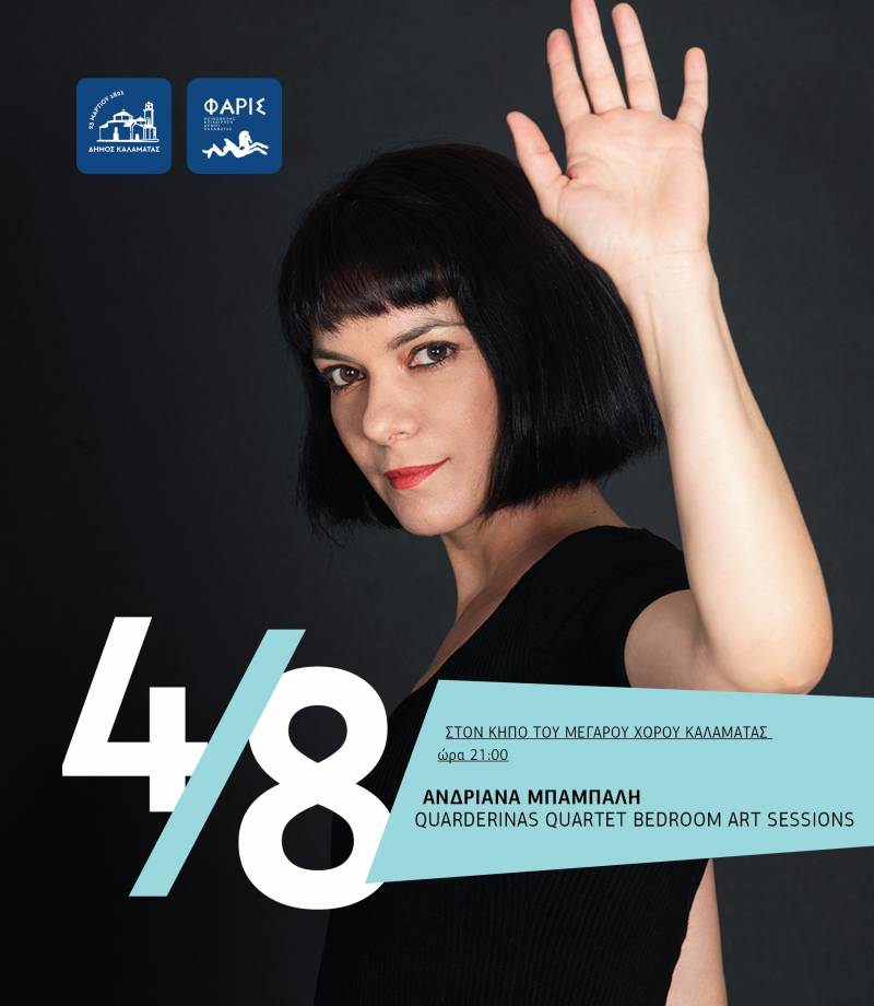 Η Μεσσήνια τραγουδοποιός Ανδριάνα Μπάμπαλη θα εμφανιστεί στις «Μουσικές διαδρομές» στον κήπο του Μεγάρου Χορού Καλαμάτας την Τετάρτη 4 Αυγούστου στις 9 μ.μ. μαζί με την μπάντα της “Quarderinas quartet”.