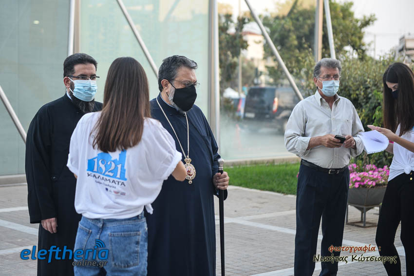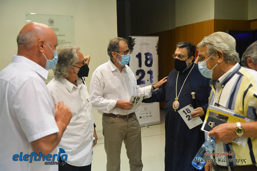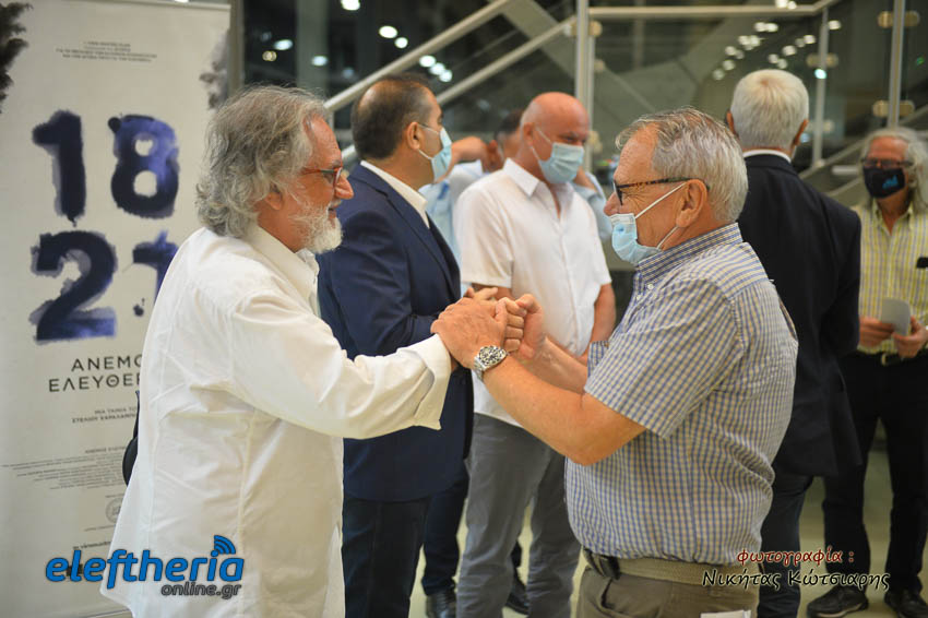 Στην επίσημη πρώτη του δραματοποιημένου ντοκιμαντέρ, χαιρετισμό έκανε ο δήμαρχος Καλαμάτας Θανάσης Βασιλόπουλος και στην συνέχεια ο κοσμήτορας της Σχολής Ανθρωπιστικών Επιστημών και Πολιτισμικών Σπουδών του Πανεπιστημίου Πελοποννήσου στην Καλαμάτα Νίκος Ζαχαριάς. Ο κ. Ζαχαριάς αναφέρθηκε στο κεντρικό θέμα της ταινίας και σημείωσε πως η υπογραφή της προκήρυξης της ανεξαρτησίας αποτέλεσε ουσιαστικά την ρίζα για το ελεύθερο ελληνικό κράτος. “Εδώ υπογράφτηκε η ληξιαρχική πράξη της γέννησης της Ελλάδας”, ακούστηκε και αργότερα από τον παραγωγό Κώστα Λαμπρόπουλο, ο οποίος κάλεσε στο βήμα και τους άλλους δύο συμπαραγωγούς, τον Γιώργο Κυριάκο και τον Γιάννη Ζαργάνη. Τελευταίος χαιρέτισε το κοινό ο σκηνοθέτης Στέλιος Χαραλαμπόπουλος, ο οποίος υπογράμμισε τις δυσκολίες στις οποίες κλήθηκε να γυριστεί αυτή η ταινία μέσα στην πανδημία, έχοντας να αντιμετωπίσει πολλές ακυρώσεις και δυσκολίες παντός τύπου. Ευχαρίστησε το Ιδρυμα Καρέλια για την μεγάλη συνεισφορά του στο όλο εγχείρημα και σημείωσε πως ούτε τα 100 χρόνια από την γέννηση του ελληνικού κράτους είχαν γιορταστεί στην χώρα μας, μιας και τότε ήταν σε εξέλιξη η Μικρασιατική Εκστρατεία και τελικά γιορτάστηκαν το 1930, τα 100 χρόνια από την ίδρυση του κράτους. Αξίζει να αναφερθεί ότι η ταινία είναι αφιερωμένη στην Ιουλία Σταυρίδου, η οποία είχε κάνει τον σχεδιασμό των σκηνικών και των κουστουμιών, όμως δεν πρόλαβε να τον υλοποιήσει, καθώς έφυγε από την ζωή.