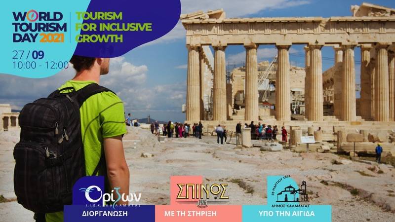Η Παγκόσμια Ημέρα Τουρισμού θα γιορταστεί την προσεχή Δευτέρα και επ’ ευκαιρία στον πεζόδρομο της Αριστομένους, μεταξύ 10 π.μ. και 12 μ., το ΙΕΚ "Ορίζων" θα προσφέρει κέρασμα στους διερχόμενους από τον πεζόδρομο της Αριστομένους (έναντι του Ιστορικού Δημαρχείου Καλαμάτας) και θα τους ενημερώνει για το φετινό μήνυμα της Ημέρας, που είναι αφιερωμένη στη χωρίς αποκλεισμούς ανάκαμψη και ανάπτυξη (Tourism for Inclusive Growth).