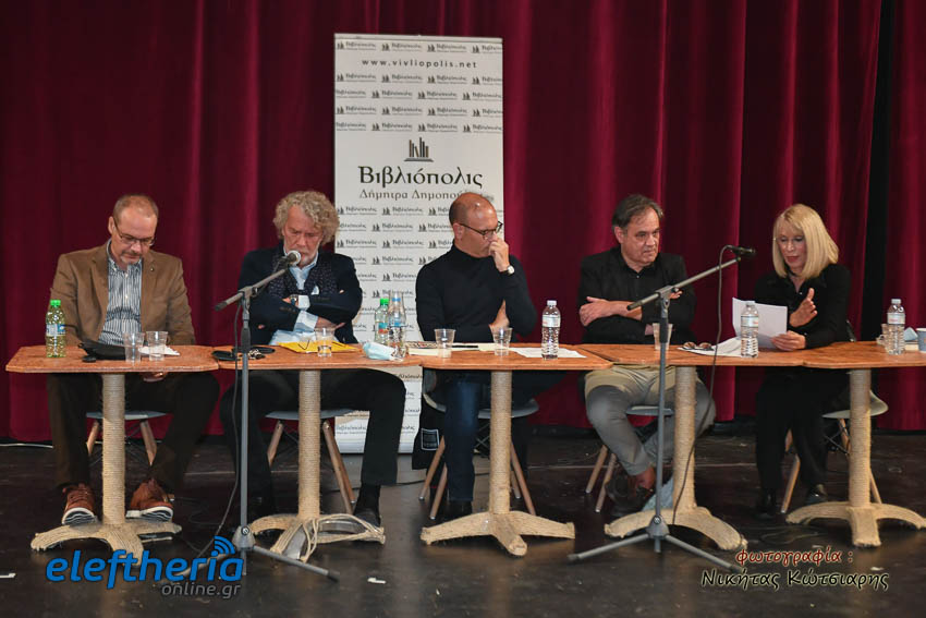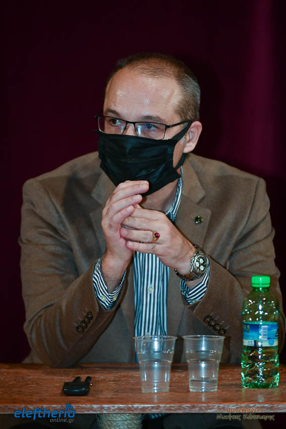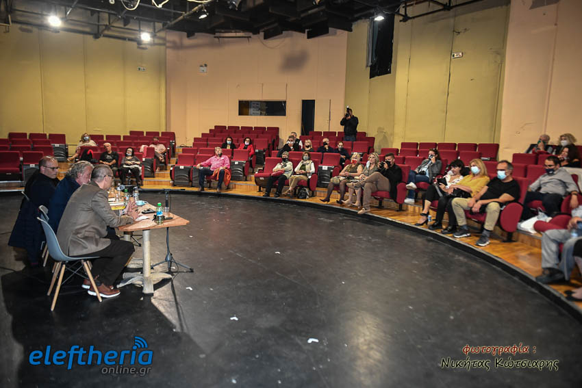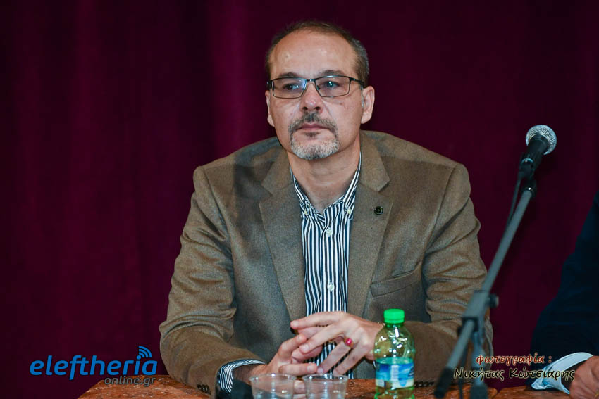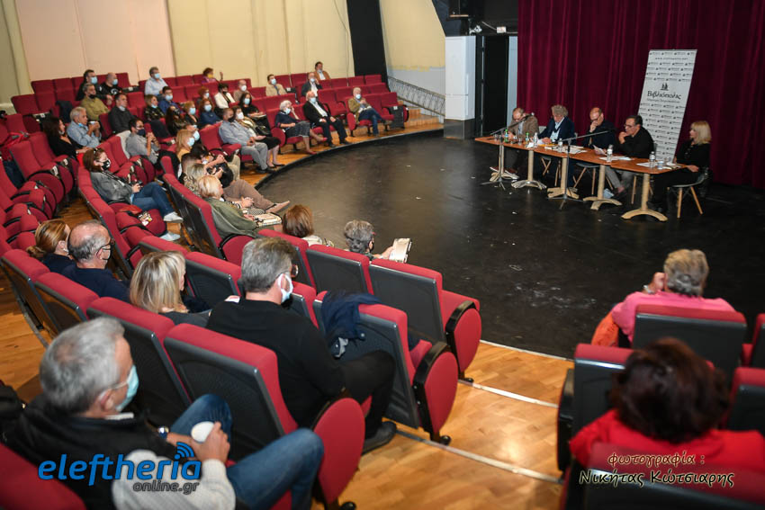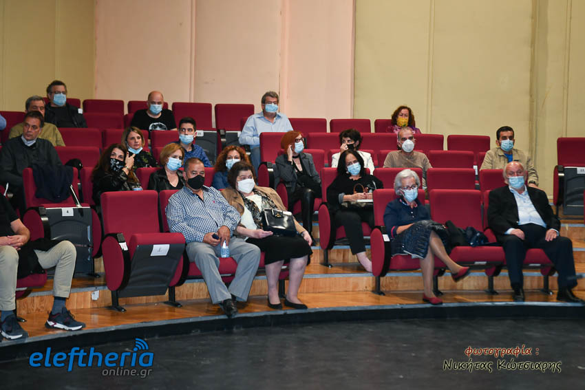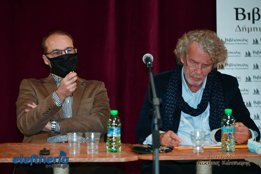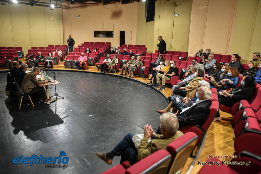 Στο αμφιθέατρο της Δημοτικής Φιλαρμονικής εκτός από τον Καλαματιανό συγγραφέα για το βιβλίο μίλησαν ο πολιτικός μηχανικός Γιώργος Γιαννόπουλος και δικηγόρος Αντώνης Κατσάς, υπό τον συντονισμό του πολιτικού μηχανικού Βασίλη Παπαευσταθίου.