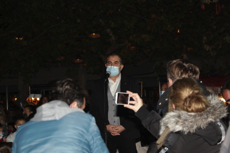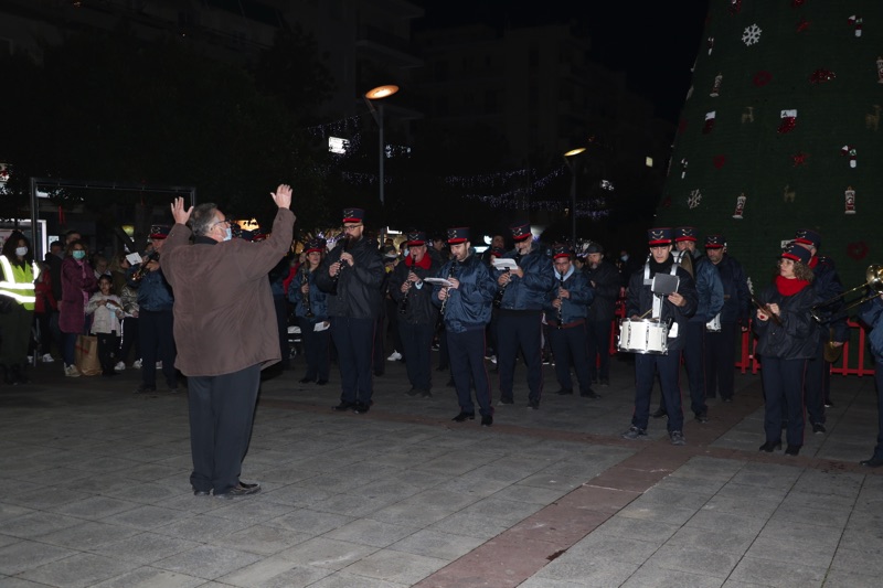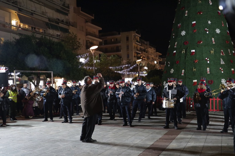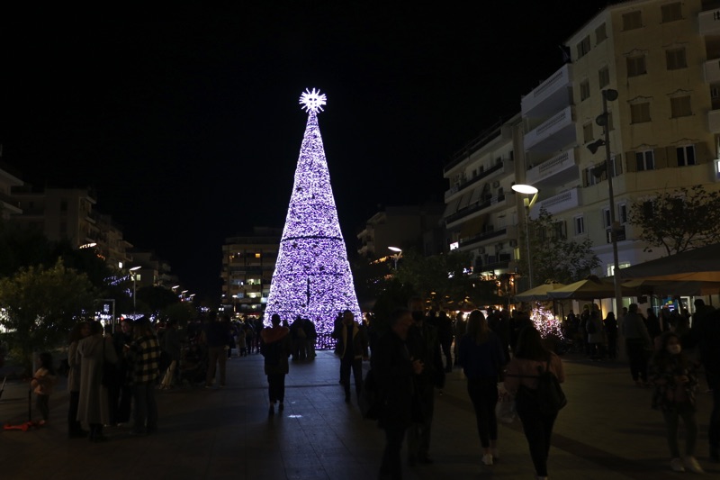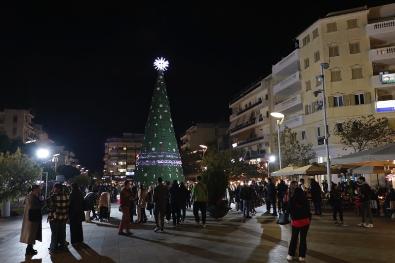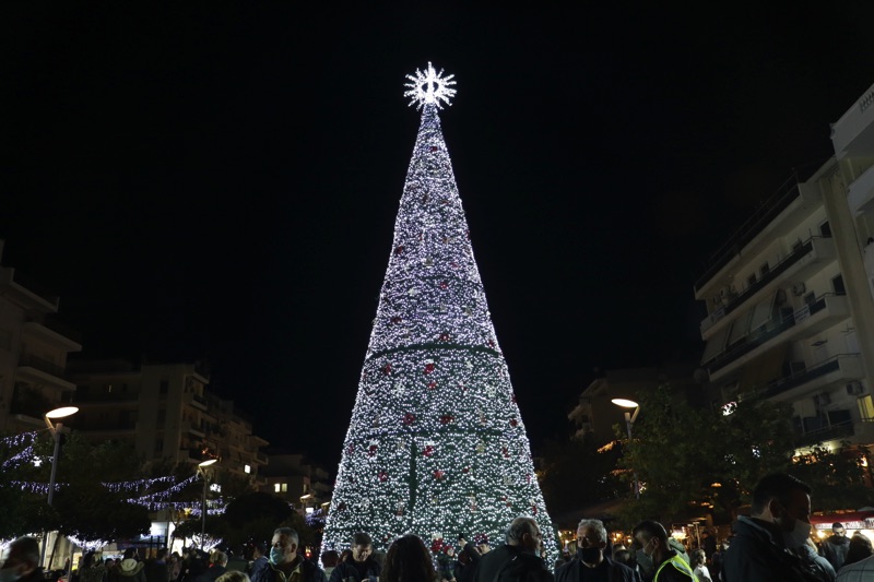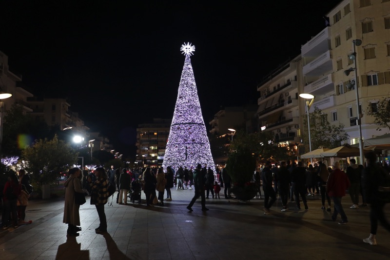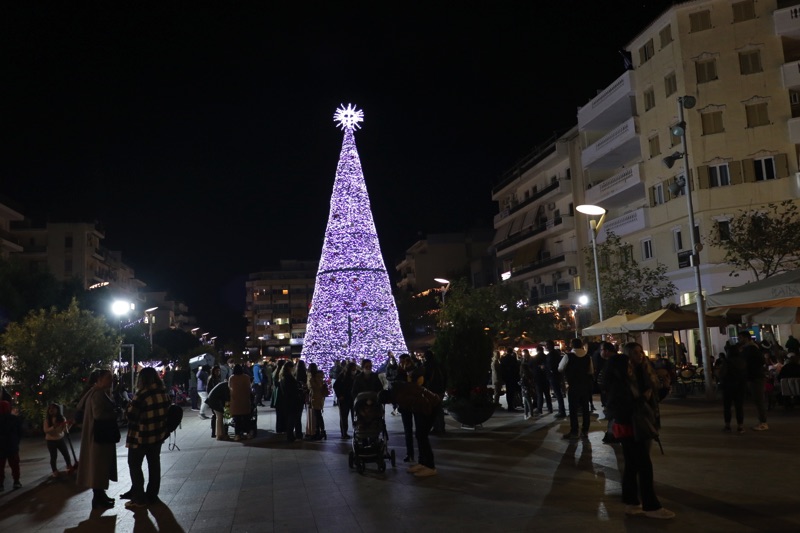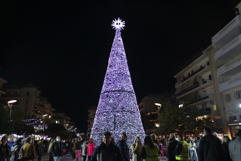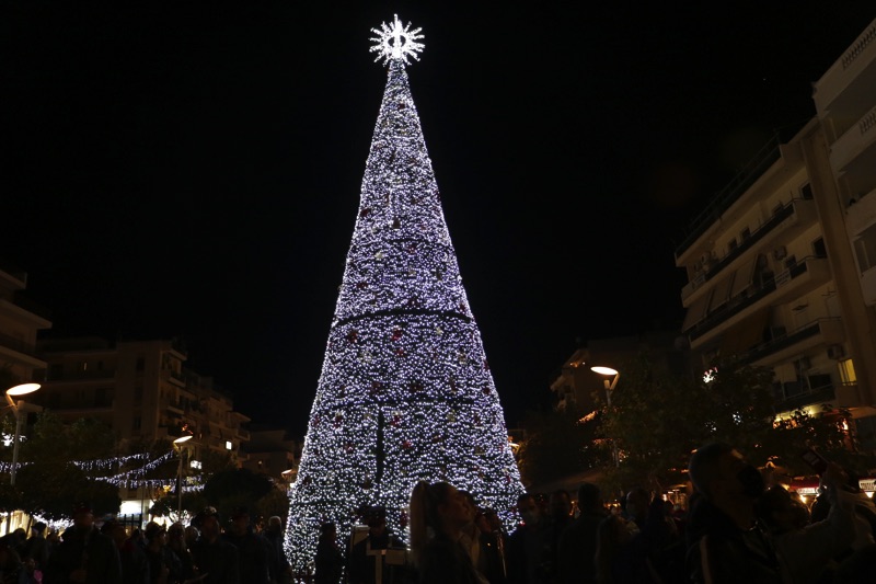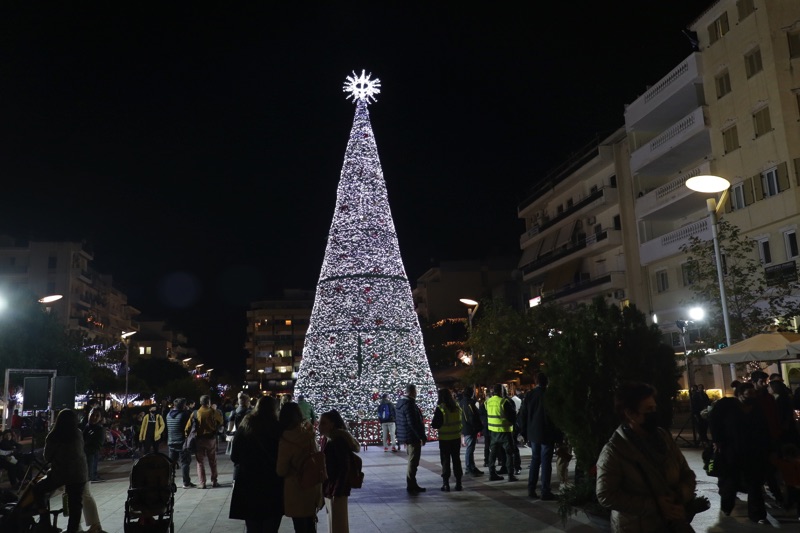 Το δέντρο άναψε ο δήμαρχος Θανάσης Βασιλόπουλος που ευχήθηκε καλές γιορτές σε όλο τον κόσμο. Ταυτόχρονα φωταγωγήθηκαν το χριστουγεννιάτικο καράβι στο λιμάνι, η μπάλα στο Ιστορικό Κέντρο και το αστέρι στην είσοδο του Πάρκου Σιδηροδρόμων.