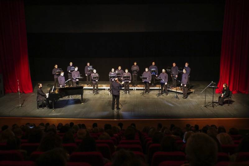 Το κοινό που γέμισε την κεντρική σκηνή του Μεγάρου, απόλαυσε το φωνητικό σύνολο “ΜεῙΖοΝ Ensemble” στο μνημειώδες έργο των Διονυσίου Σολωμού - Νικόλαου Μάντζαρου: “Υμνος εις την Ελευθερίαν” σε διεύθυνση του μαέστρου της Εθνικής Λυρικής Σκηνής Αγαθάγγελου Γεωργακάτου.