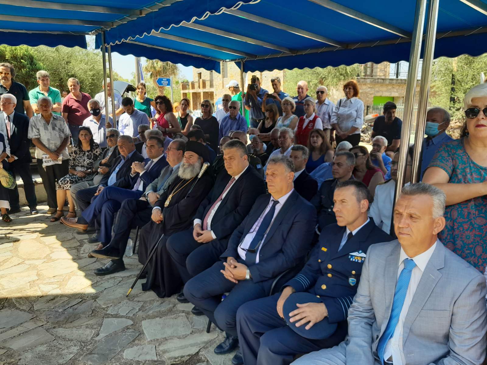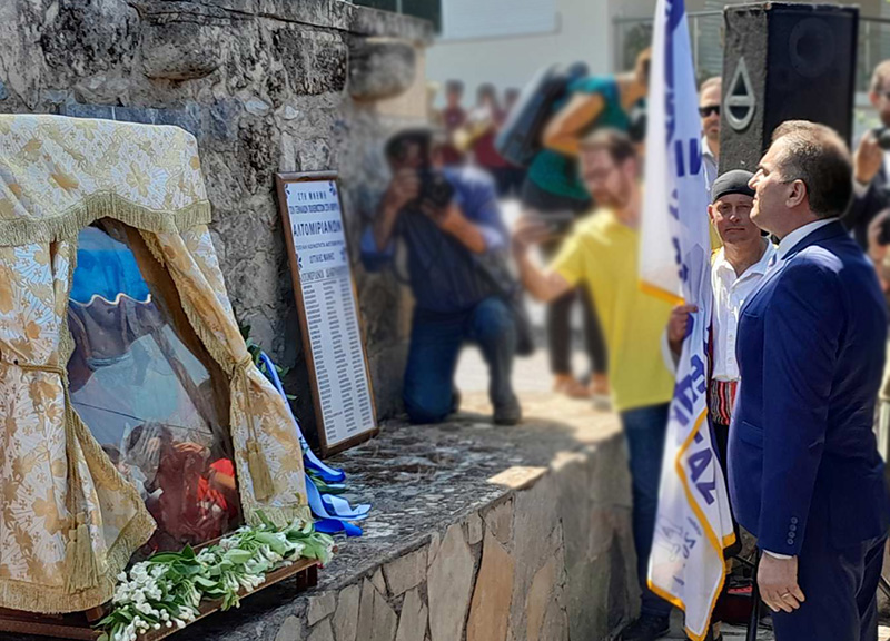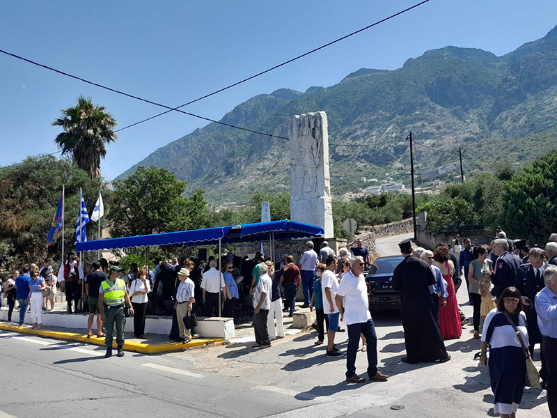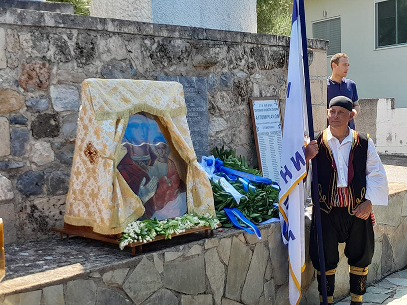 Ακολούθησε λιτανεία της εικόνας της Παναγίας της Ελπιδοφόρου έως τη θέση Μάνδρα Αλμυρού κι επιμνημόσυνη δέηση στο ηρώο των πεσόντων από τον κ. Χρυσόστομο.