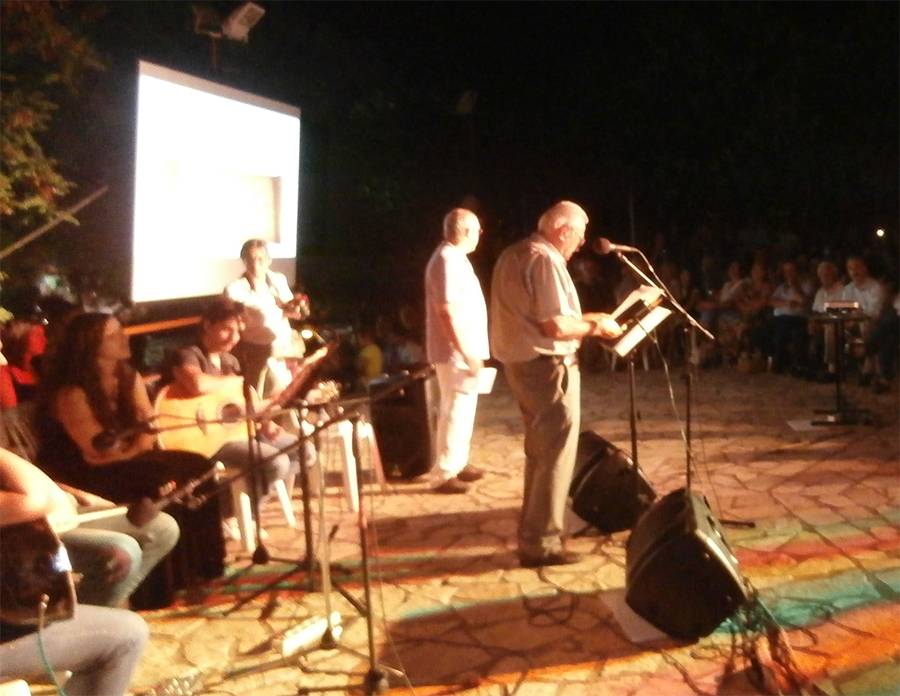 Στα θεατρικά αποσπάσματα έπαιξαν οι: Γιολάντα Βασιλόγιαννη, Μαρία Κορδονούρη, Μαρία Παπαδοπούλου και Λευτέρης Παναγιωτόπουλος. Μουσική έπαιξαν ο Αιμίλιος Κούμανης, η Σοφία Τσόγκα, ο Σταύρος Δεριζιώτης, ο Παναγιώτης Καψαμπέλης και ο Λευτέρης Παναγιωτόπουλος. Ο κ. Φουσιάνης παρουσίασε και ένα δικό του βίντεο, σχετικό με τη βραδιά.