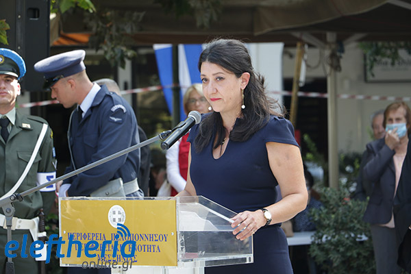Τον πανηγυρικό της ημέρας εκφώνησε η Αννα Καλογεροπούλου, αντιπεριφερειάρχης σε θέματα τουρισμού και πολιτισμού, επισημαίνοντας ότι “η σημερινή μέρα είναι μία από τις πιο σημαντικές, που άνοιξε το δρόμο για τη δημιουργία του νεότερου Ελληνικού κράτους”. Σημείωσε πως “η σημερινή μέρα γεννά χρέος, καλούμαστε να υπερασπιστούμε τα ίδια ιδανικά και αξίες. Χρέος για την ελευθερία που γεννά παιδεία, πολιτισμό, τρόπο σκέψης και ζωής”.