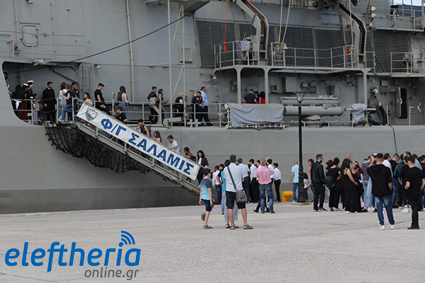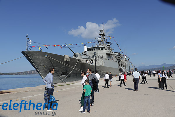 Οι επίσημοι προσκεκλημένοι, στη συνέχεια, επισκέφθηκαν την φρεγάτα του Πολεμικού Ναυτικού “Σαλαμίς”, όπου και ξεναγήθηκαν από τον κυβερνήτη και το πλήρωμα. Την φρεγάτα επισκέφθηκαν και ξεναγήθηκαν πολίτες και μαθητές σχολείων, μεταξύ των οποίων και από το Μουσικό Σχολείο Σπάρτης.