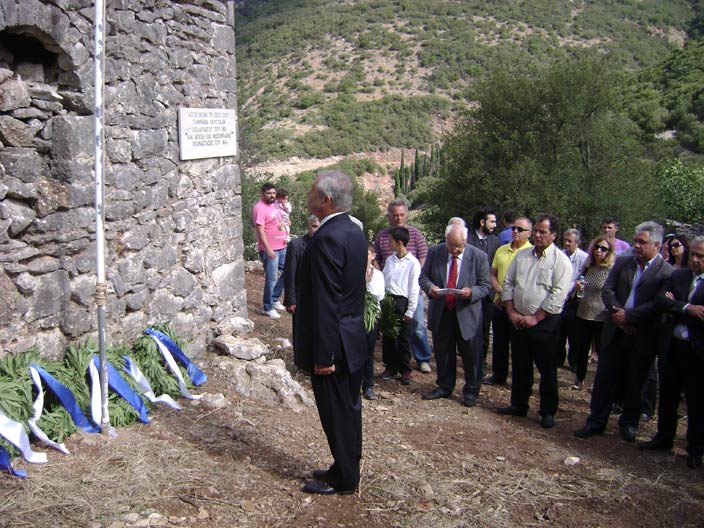 Στο σπίτι του Γιαννάκη Γκρίτζαλη έγινε κατάθεση στεφάνων από τον προϊστάμενο του ΣΔΟΕ Στέλιο Στασινόπουλο εκ μέρους της κυβέρνησης, τον βουλευτή Γιάννη Λαμπρόπουλο εκ μέρους της Βουλής, τον σμήναρχο Θεόδωρο Λάγιος υποδιοικητή της 120 ΠΕΑ, τον αντιπεριφερειάρχη Παναγιώτη Αλευρά, τον δήμαρχο Οιχαλίας Φίλιππο Μπάμη, τον αντιδήμαρχο Καλαμάτας Χρήστο Ριζά, τον Δημήτρη Γεωργόπουλο πρόεδρο του Τ.Σ. Ψαρίου, τον Κώστα Καράμπελα εκ μέρους της Ομοσπονδίας Συλλόγων Ορεινής Τριφυλίας, τον Διονύσιο Αθανασόπουλο πρόεδρο του Προοδευτικού Συλλόγου Ψαραίων, τον Αντώνη Δρακόπουλο εκ μέρους του Συλλόγου Ανω Μέλπειας, τον Σωτήρη Κούκη εκ μέρους του Πολιτιστικού Συλλόγου Ψαραίων «Το Μετσίκι» και τον Παναγιώτη Λούτο πρόεδρο της Ομοσπονδίας Συλλόγων Συνδέσμων Τριφυλίας. Παρευρέθηκαν επίσης ο βουλευτής Θανάσης Πετράκος, η επικεφαλής της μείζονος αντιπολίτευσης του Δήμου Οιχαλίας Ελένη Αλιφέρη και ο πρόεδρος του Δ.Σ. Οιχαλίας Ηλίας Σακελλαριάδης.