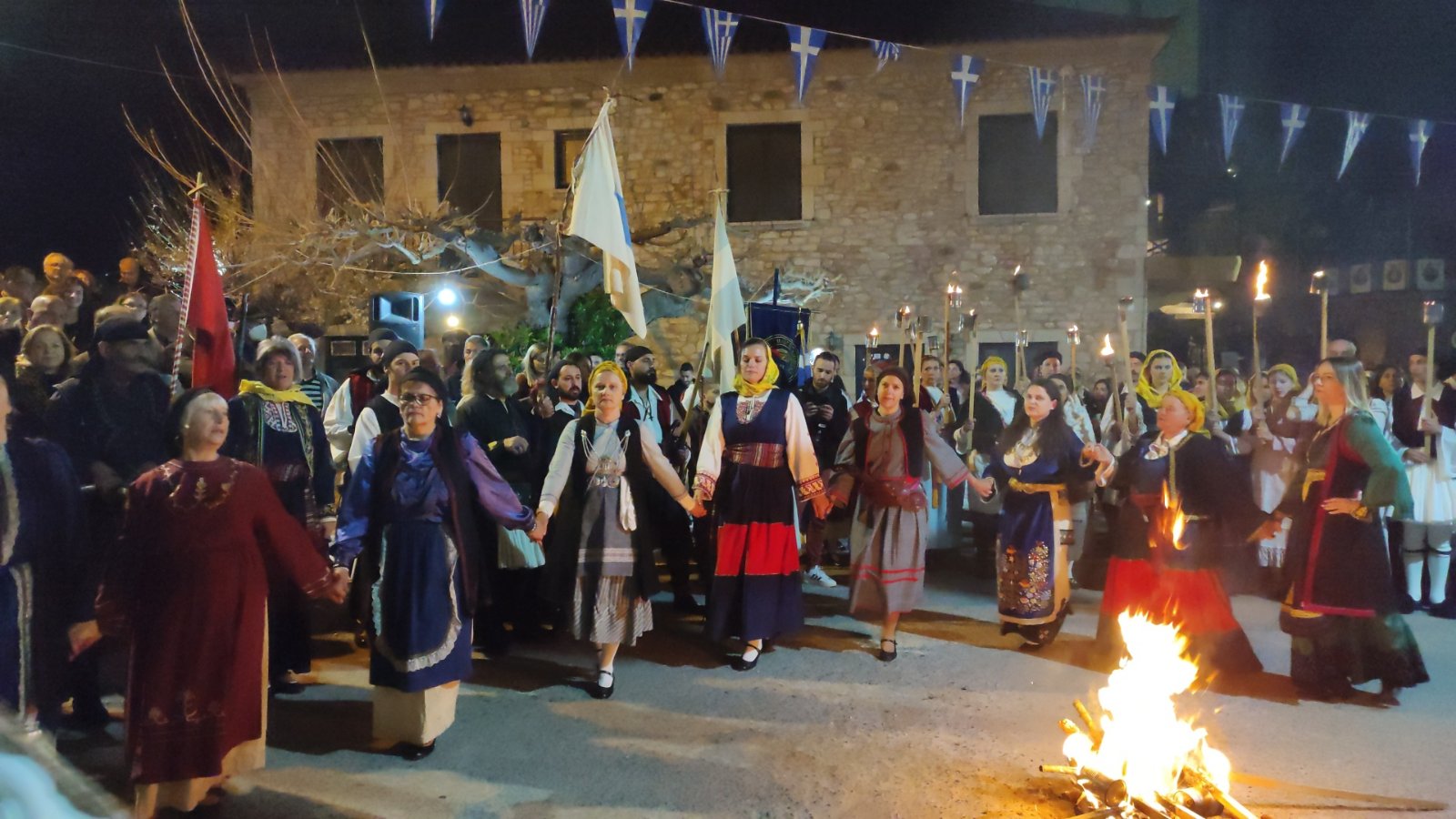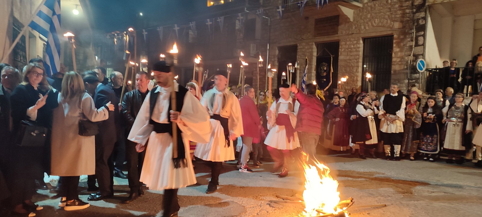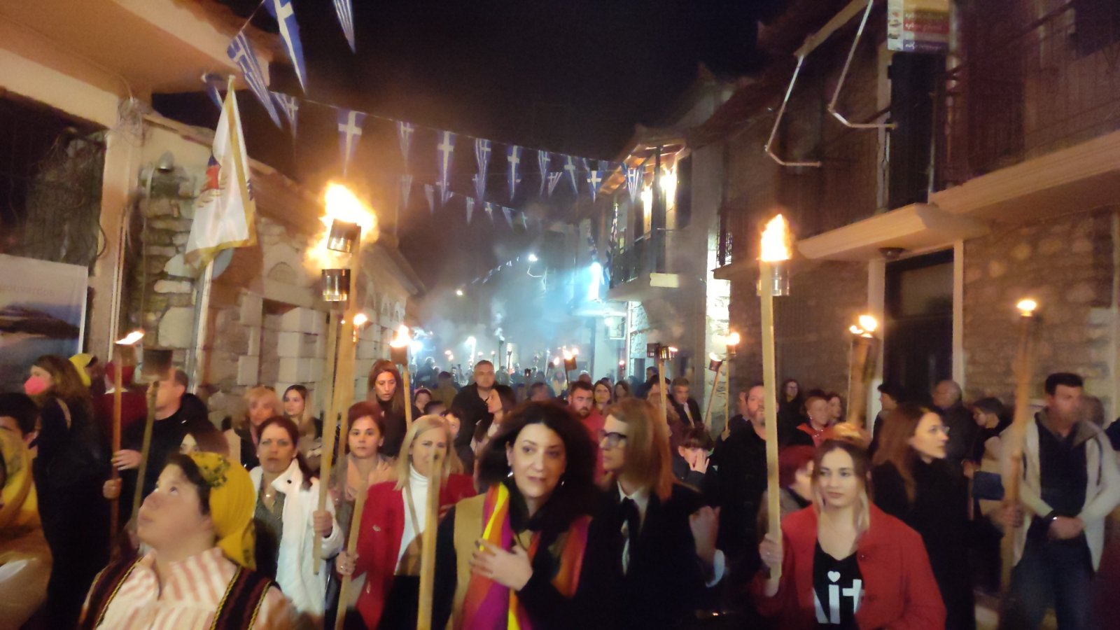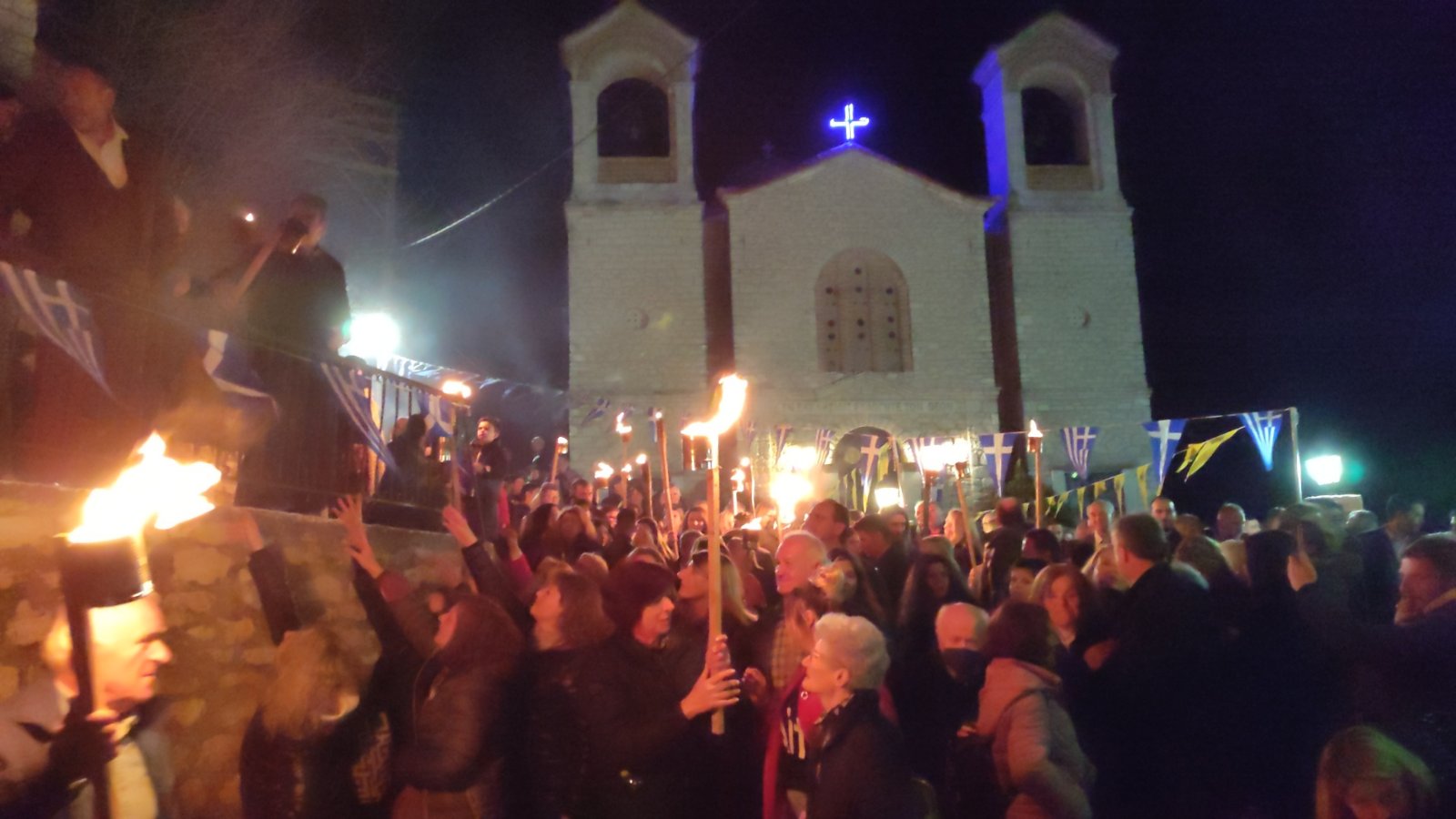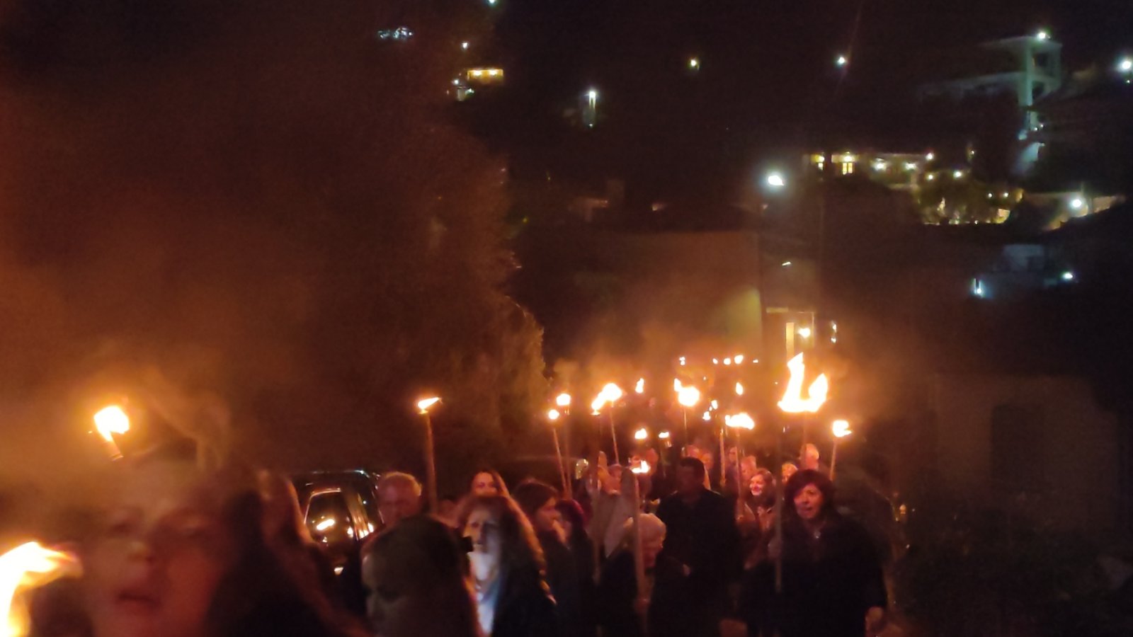 λαμπαδηφορίες όπου ένα ποτάμι φωτάς από τον κόσμο που κρατούσε δάδες στο χέρι ξεχύθηκε στους δρόμους του χωριού.