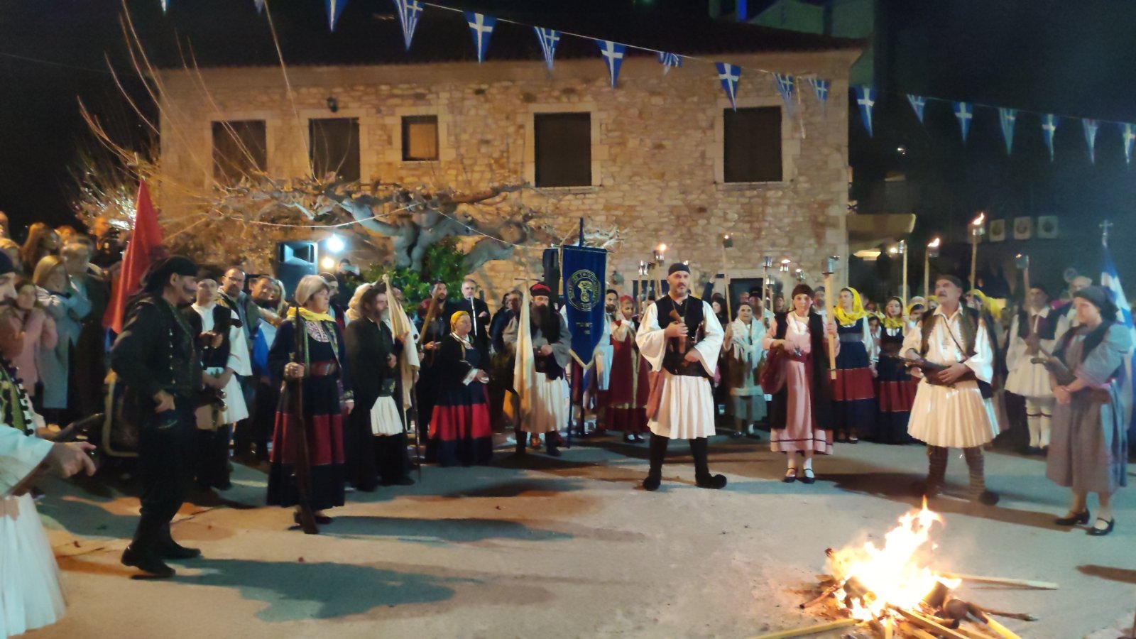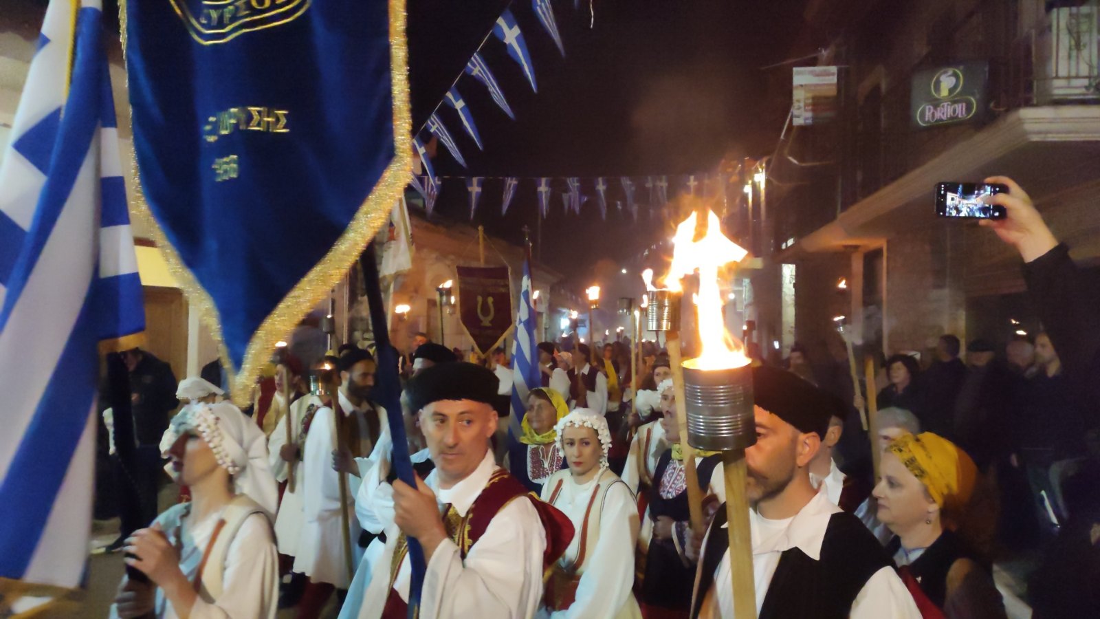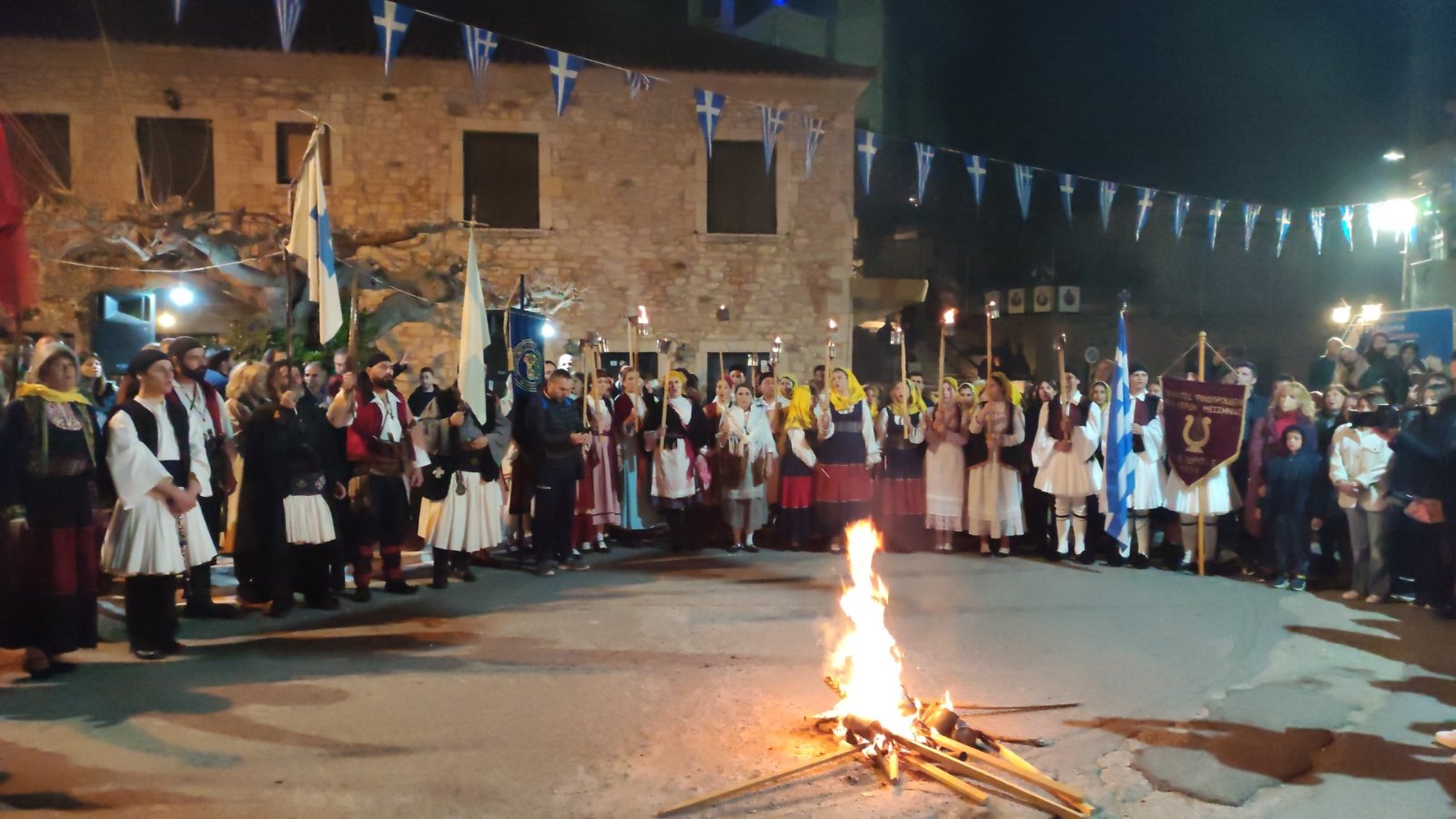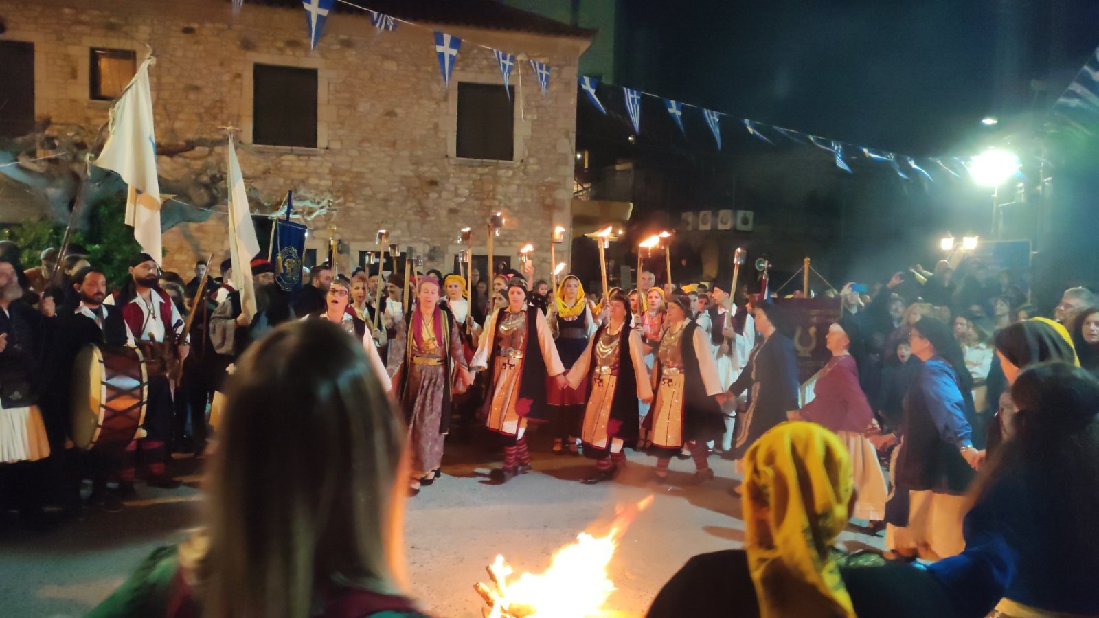 λαμπαδηφορίες όπου ένα ποτάμι φωτάς από τον κόσμο που κρατούσε δάδες στο χέρι ξεχύθηκε στους δρόμους του χωριού.