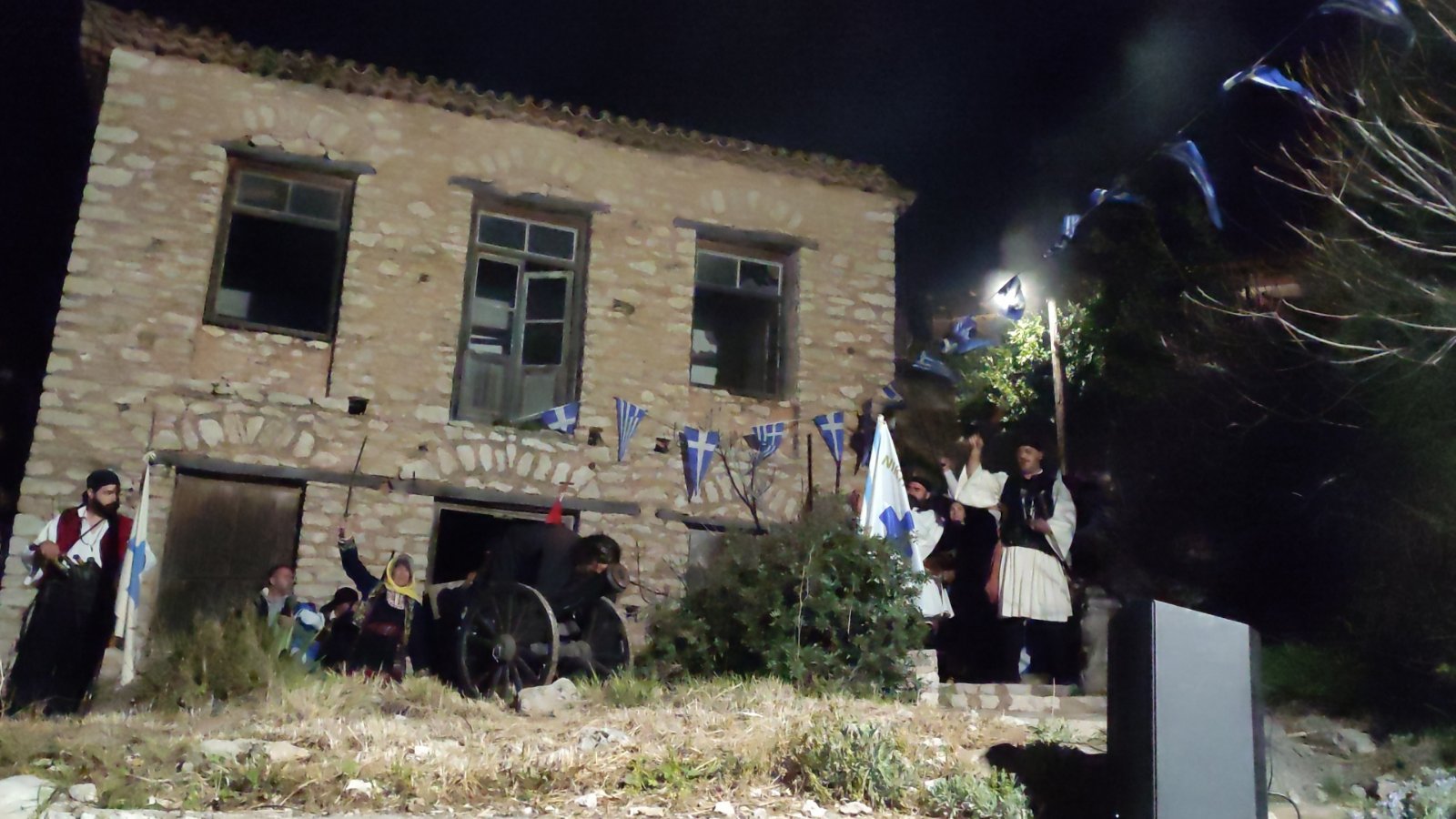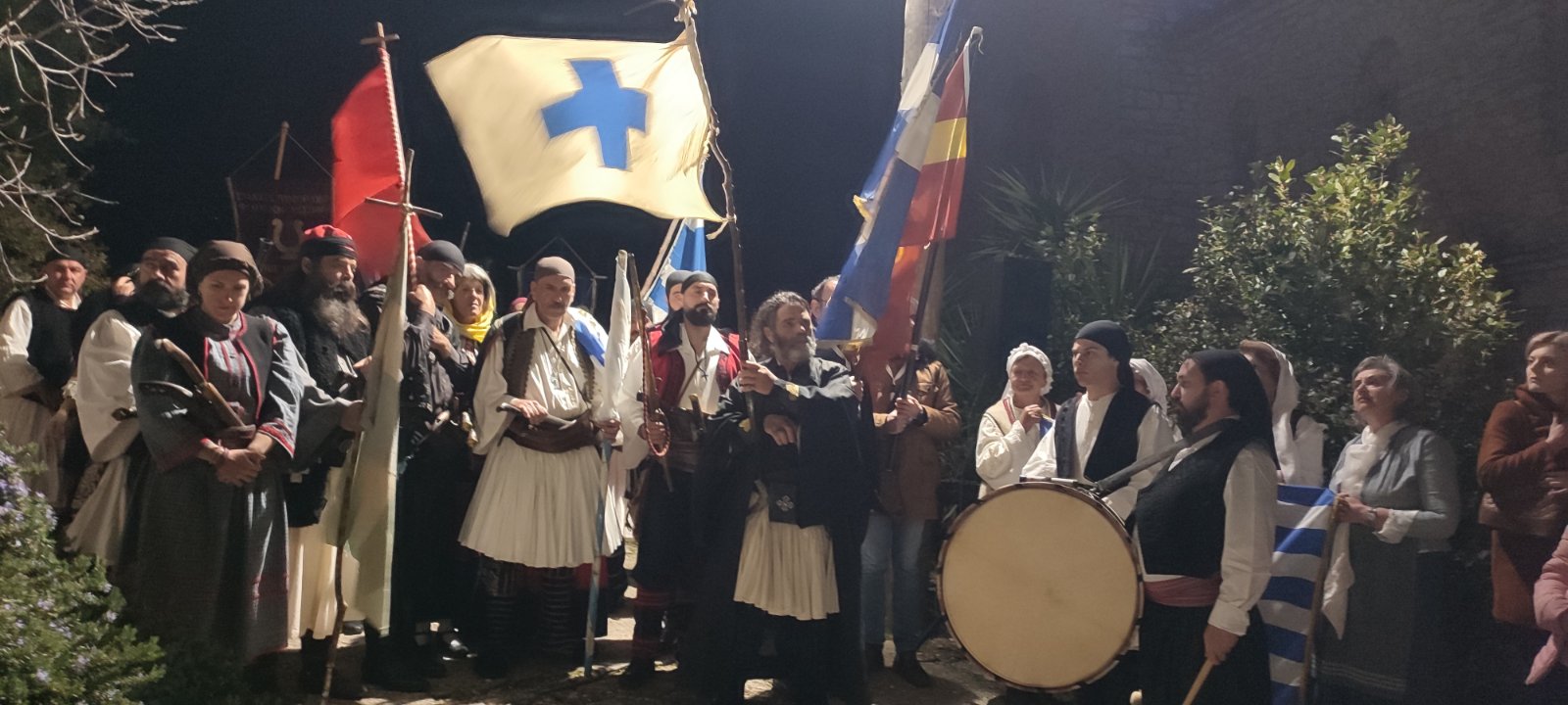 Στη συνέχεια στο χώρο δίπλα από το ναό έλαβε χώρα θεατρικό δρώμενο με την αναπαράσταση του ξεσηκωμού όπου κανονιοβολισμοί και τουφεκιές σήμαναν την επανάσταση και το ξεσηκωμό του έθνους. Ακολούθησαν οι