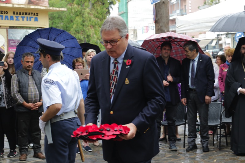 Η τελετή διεξήχθη στο Μνημείο των πεσόντων Συμμάχων (Βρετανών, Αυστραλών, Νεοζηλανδών, Ισραηλινών, Κυπρίων και Ελλήνων) κατά τη Μάχη της Καλαμάτας, το οποίο βρίσκεται στο Δημοτικό Πάρκο Σιδηροδρόμων (Κρήτης και Ψαρών).