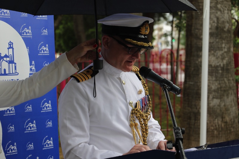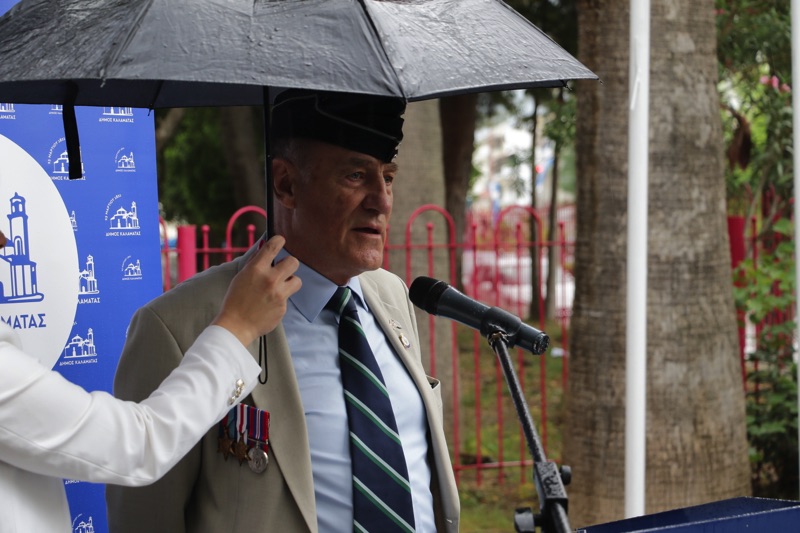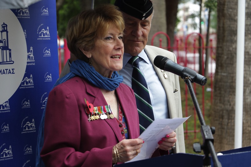 Χαιρετισμό απηύθυναν ο δήμαρχος Καλαμάτας Θανάσης Βασιλόπουλος, ο εκπρόσωπος της βρετανικής κυβέρνησης, Πλοίαρχος του Βασιλικού Ναυτικού Άλεξ Μπους και η Γραμματέας των Απομάχων Βετεράνων της Ελληνικής Εκστρατείας Κατοίκων Καλαμάτας Janet Parkin. Ομιλία πραγματοποίησε η καθηγήτρια Αρχαίας Φιλολογίας του Πανεπιστημίου Πελοποννήσου Ελένη Βολονάκη, η οποία μεταξύ άλλων τόνισε ότι έγιναν σκληρές μάχες στρατευμάτων στη συμβολή των οδών Φαρών και Κανάρη, Μαιζώνος και Σανταρόζα, αλλά και στο λιμάνι της Καλαμάτας.