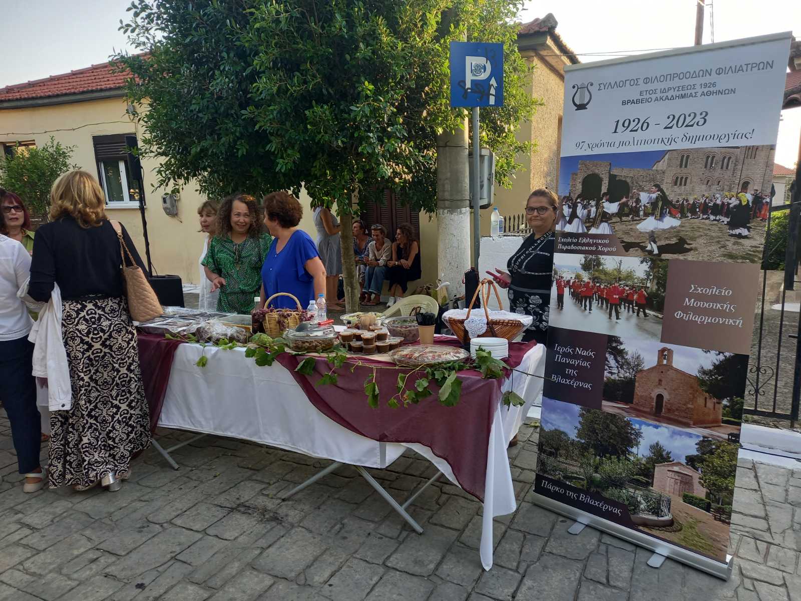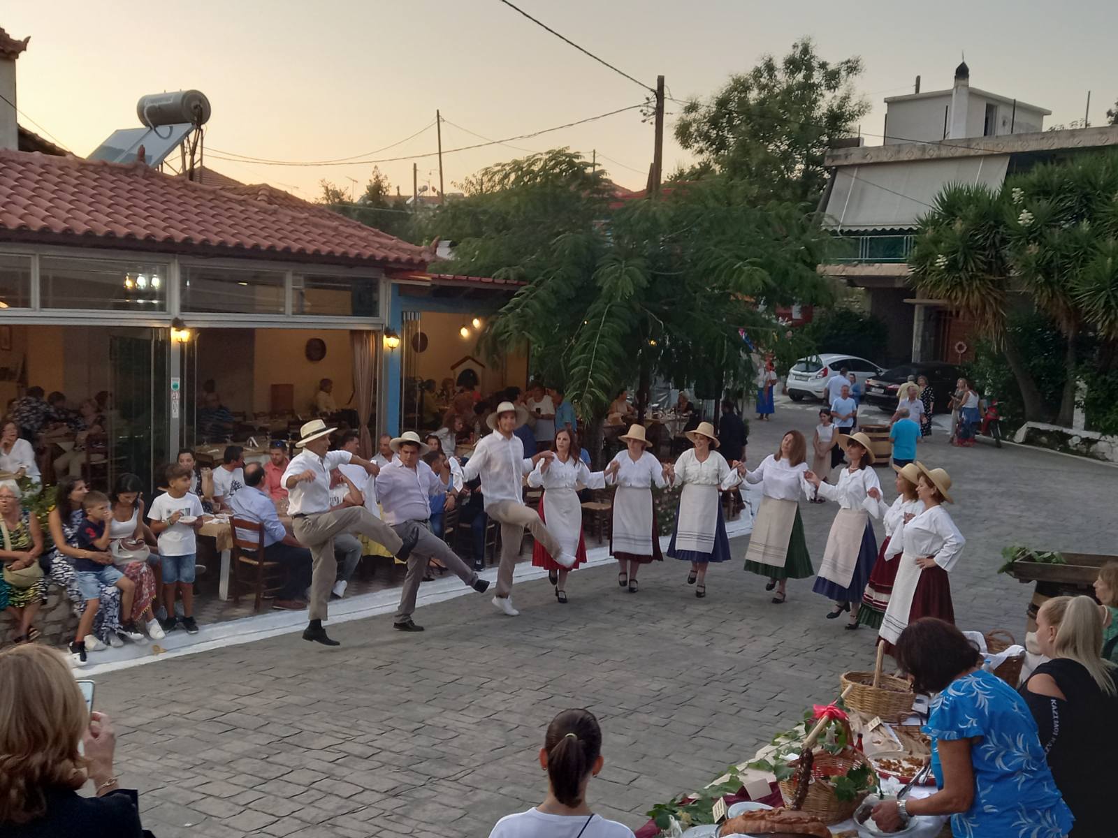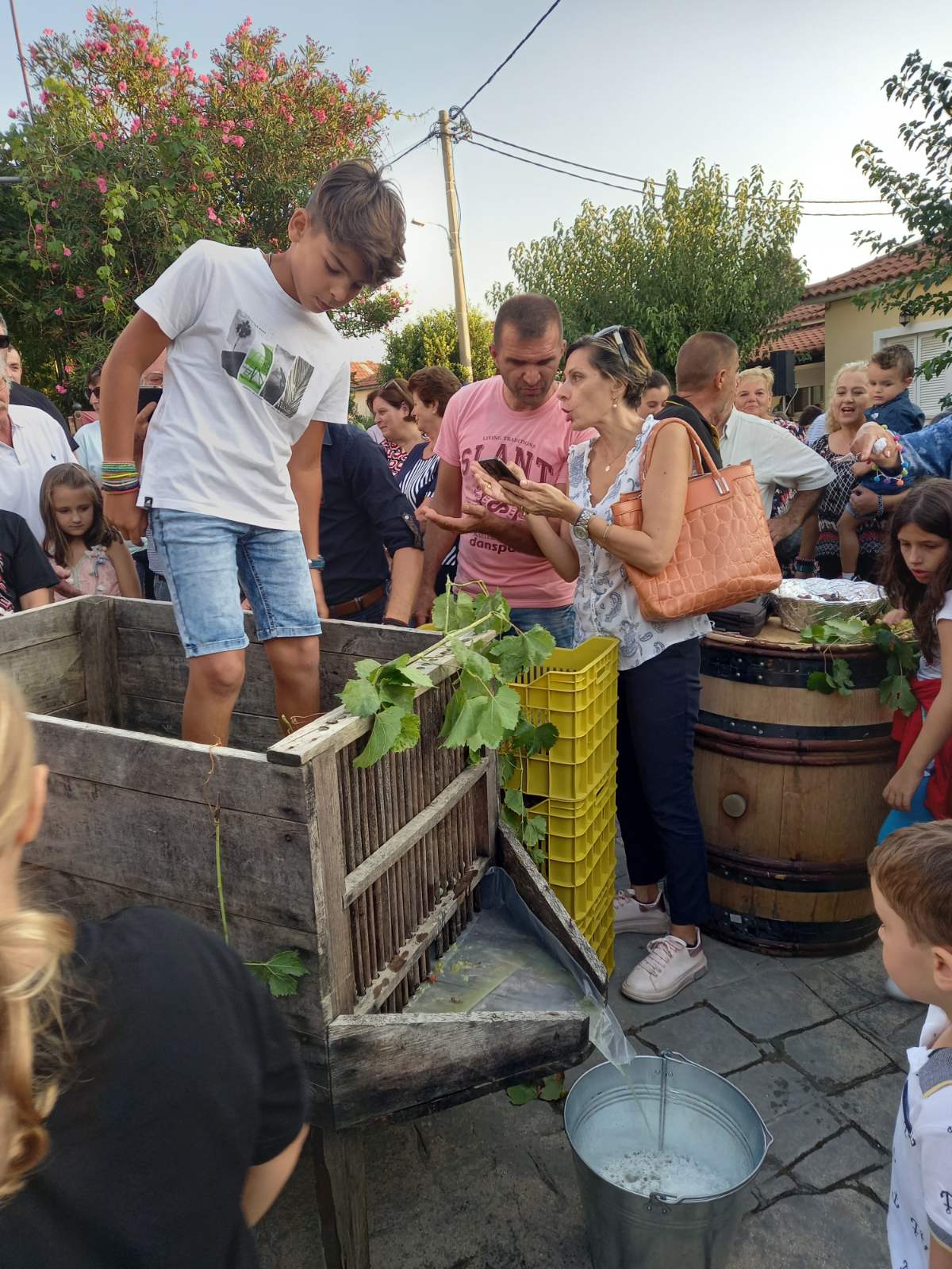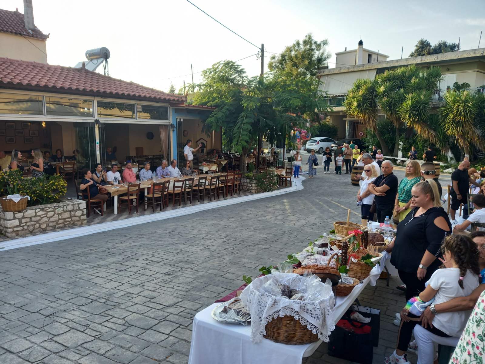 Στην πλατεία του χωριού, που φημίζεται για τα αμπέλια του και για το καλό κρασί που παράγει, είχαν στηθεί αρκετοί μπουφέδες με παραδοσιακά εδέσματα που είχαν φτιάξει με μεράκι οι γυναίκες του χωριού. Εδέσματα από σταφύλι, σταφίδα και πετιμέζι, ενώ πάνω σε βαρέλια υπήρχαν σταφύλια και πολλές ποικιλίες κρασιών, που μπορούσε να γευτεί ο κόσμος.