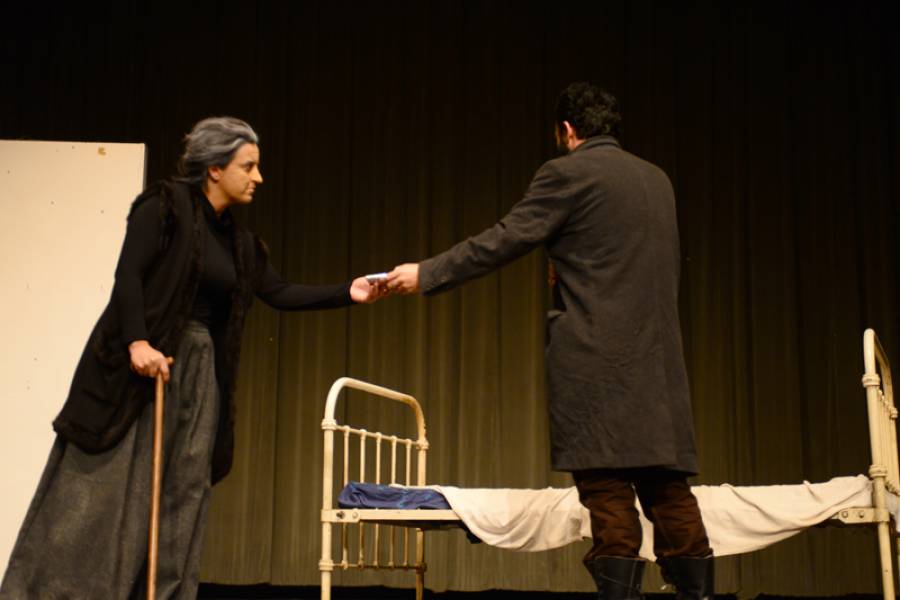 Ολοι οι ήρωες του έργου -ο δαιμονικός Ρασκόλνικοβ, η υπέροχη Ντούνια Ρομάνοβνα, ο τραγικός Μαρμελάντοβ, η μαρτυρική Σόνια, η βασανισμένη Πουλχερία Αλεξάντροβνα, ο σατανικός Πορφύρης Πετρόβιτς, ο λάγνος Σβιντριγκάιλοβ, ο ανέμελος Ραζουμίχιν, η τραγική Κατερίνα, ο πονηρός και ύπουλος Λούζιν- όλοι τους διαχρονικοί ανθρώπινοι τύποι, ζωντανεύουν μέσα από τις σελίδες του βιβλίου και στέκονται μπροστά στο κοινό, είτε έξαλλοι είτε θλιμμένοι, είτε σαρκαστικοί, είτε απογοητευμένοι, είτε τραγικοί.