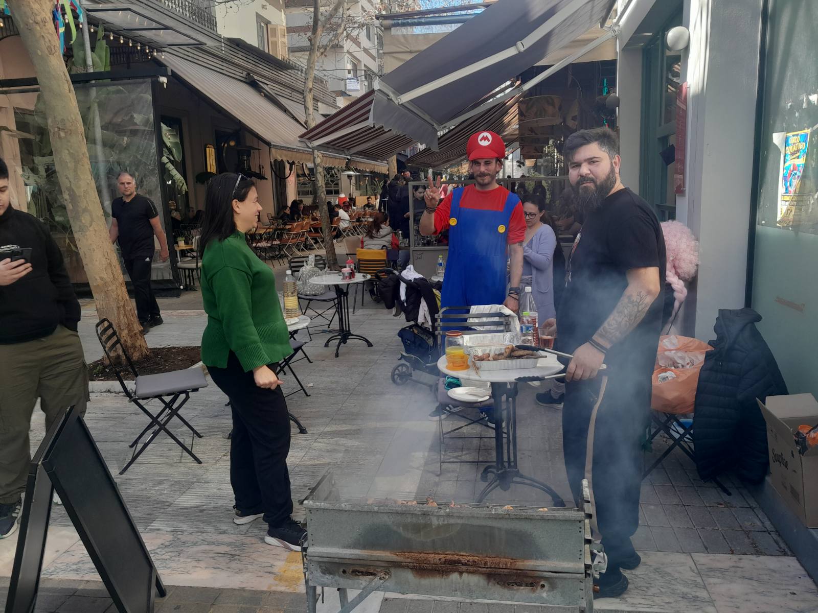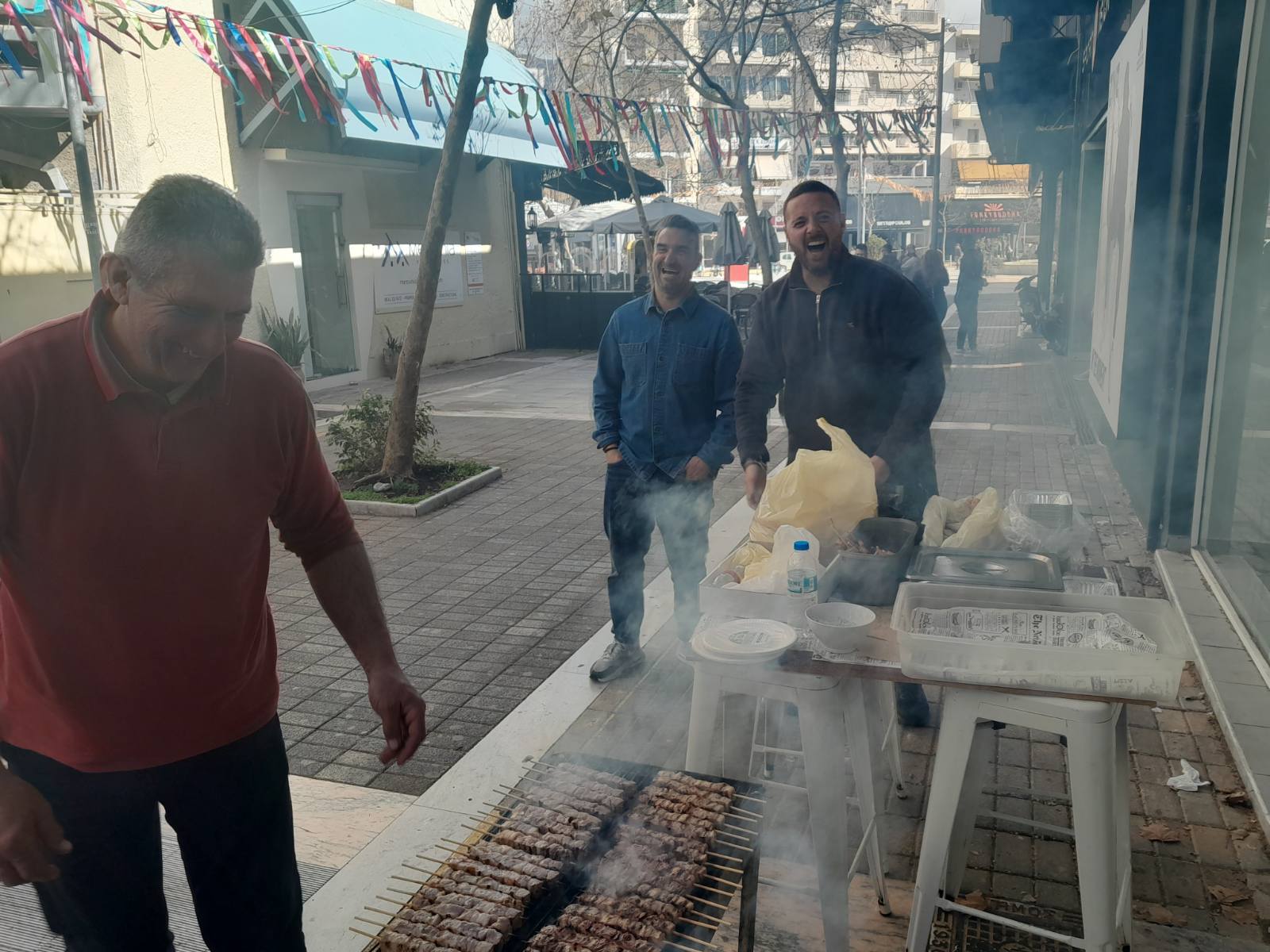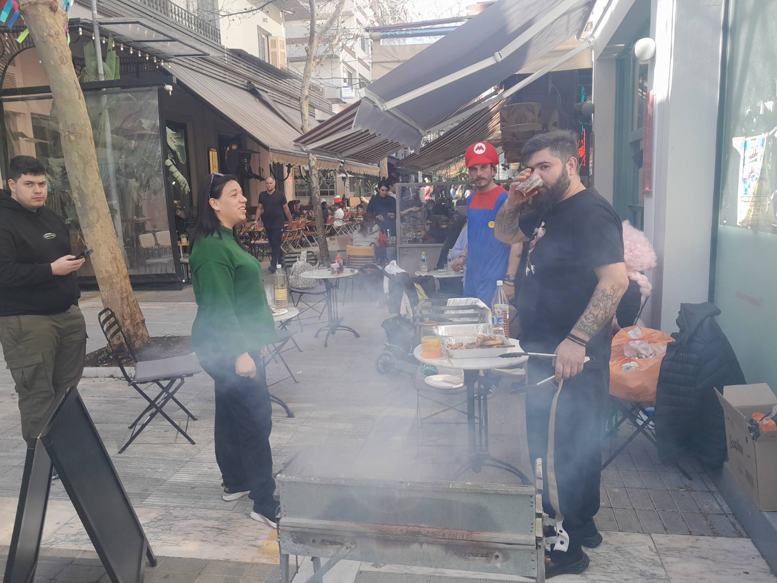 Ψησταριές έχουν στηθεί σε ψητοπωλεία, κρεοπωλεία, καταστήματα, αλλά και σπίτια με τους Καλαματιανούς να μην χάνουν την ευκαιρία για το καθιερωμένο... τσίκνισμα με καλή διάθεση και παρέα.