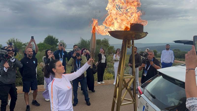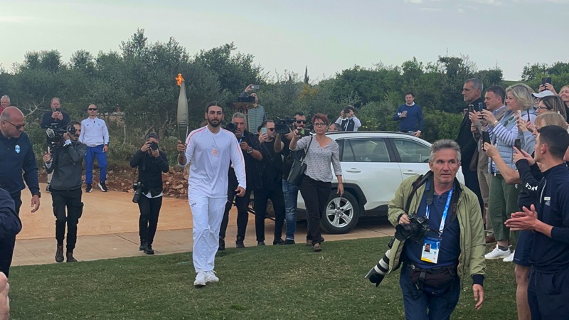 Εκεί την Φλόγα μετέφερε ο απόφοιτος της Ακαδημίας Γκολφ της Costa Navarino και No1 Ελληνας γκολφερ αυτή τη στιγμή Χρήστος Πανταζίδης και την υποδέχθηκαν πλήθος κόσμου, μεταξύ των οποίων ο πρόεδρος της Διεθνούς Ολυμπιακής Ακαδημίας Ισίδωρος Κούβελος, ο πρόεδρος της Ελληνικής Ολυμπιακής Επιτροπής Σπύρος Καπράλος, η χάλκινη Ολυμπιονίκης ρυθμικής γυμναστικής το 2000 στο Σίδνει Κλέλια Πανταζή, καθώς και ο Διευθύνων Σύμβουλος της ΤΕΜΕΣ Ευγένιος Δενδρινός, όπως και νεαρά μέλη της ακαδημίας γκολφ της Costa Navarino.