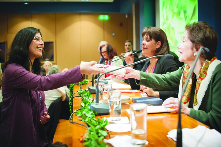 Η απονομή έγινε στις 12 Δεκεμβρίου στην αίθουσα "Λόγου και τέχνης" της Στοάς του Βιβλίου. Παρούσα ήταν και η γνωστή συγγραφέας Αγγελική Βαρελλά, η οποία είναι και επίτιμη πρόεδρος της Γυναικείας Λογοτεχνικής Συντροφιάς.