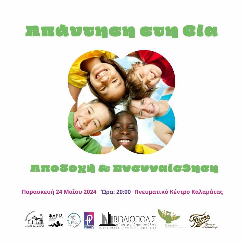Η εκδήλωση αυτή διοργανώνεται από το Δήμο Καλαμάτας, την “Φάρις”, την Α.Μ.Κ.Ε. “Κάθε βιβλίο ένα ταξίδι” και την Κοιν.Σ.Επ “Φάος” και υποστηρίζεται από το Κέντρο Ψυχοθεραπείας και Ειδικής Αγωγής “Εστιάζην” και το βιβλιοπωλείο “Βιβλιόπολις”.