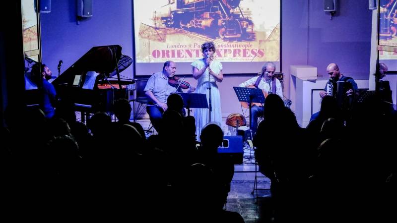 Ο δεξιοτέχνης σολίστας Κυριάκος Γκουβέντας και οι εξαιρετικοί μουσικοί που τον πλαισίωσαν, ταξίδεψαν το κοινό με υπέροχες μουσικές και τραγούδια που ακολούθησαν τη διαδρομή του Orient Express από την Κωνσταντινούπολη, το Βουκουρέστι, το Βελιγράδι και τη Βιέννη μέχρι το Παρίσι.