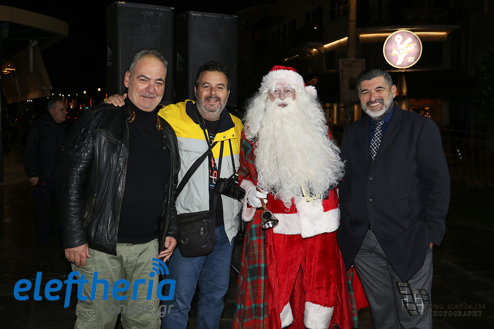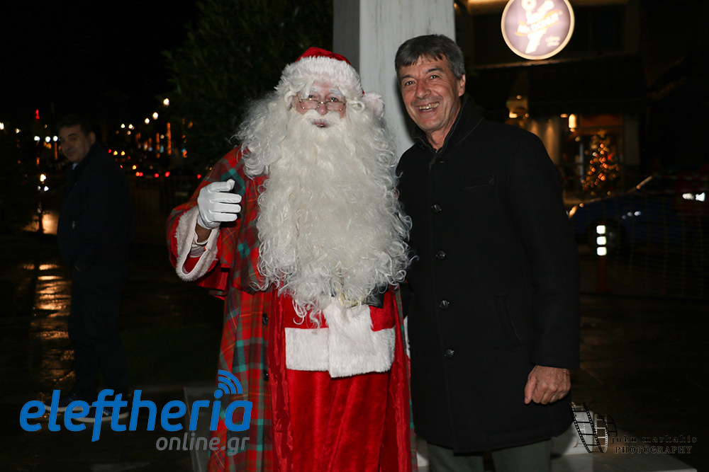 Τη φωταγώγηση της μπάλας ανέλαβαν οι πρόεδροι της Δημοτικής Κοινότητας Καλαμάτας Παναγιώτης Λύρας και της Φάρις Σωτήρης Κριτσωτάκης και ο... Αγιος Βασίλης.