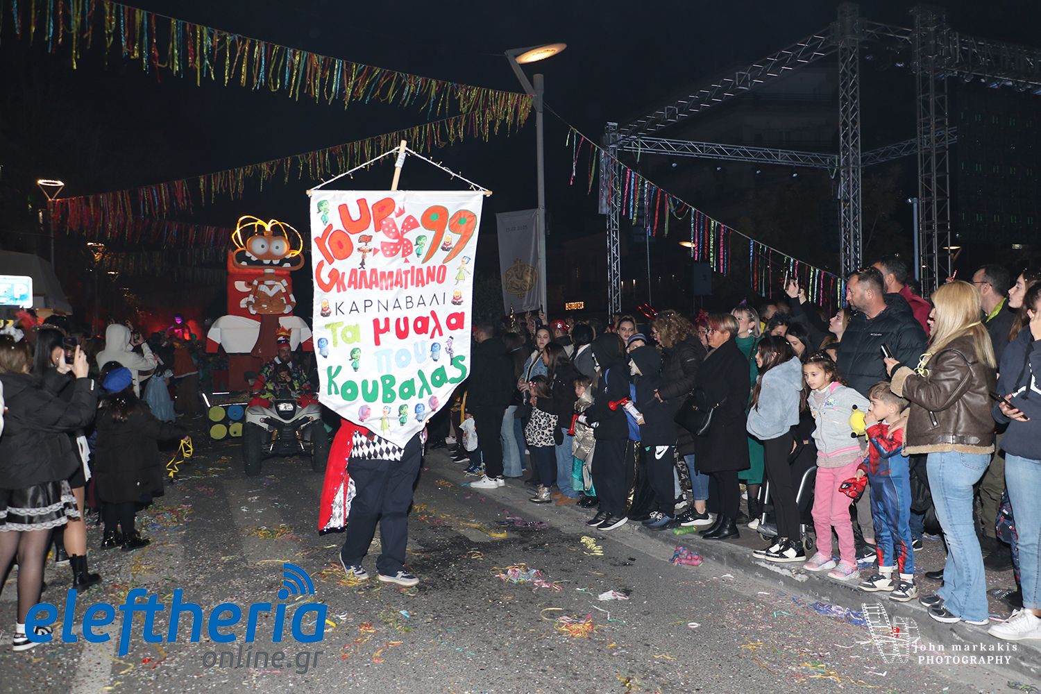 Η νυχτερινή παρέλαση του 12ου Καλαματιανού Καρναβαλιού, με αφετηρία τη συμβολή της Αριστομένους με το Εργατικό Κέντρο Καλαμάτας και κατάληξη στην πλατεία 23ης Μαρτίου κέρδισε τις εντυπώσεις, δίνοντας μήνυμα ελπίδας και αισιοδοξίας με το κέφι και την διάθεση που δημιουργήθηκε.
