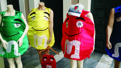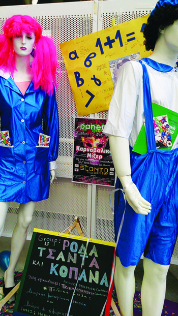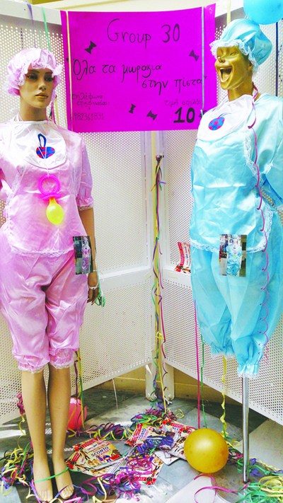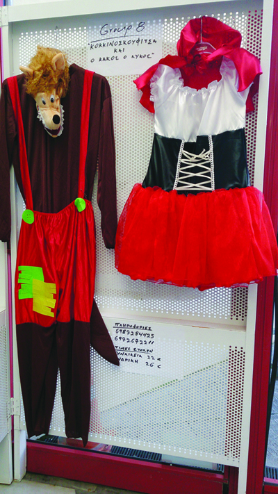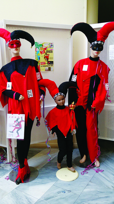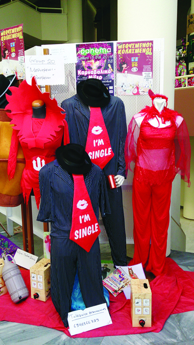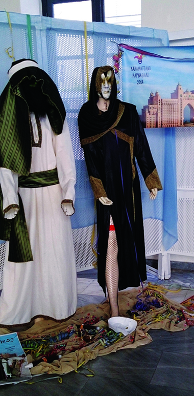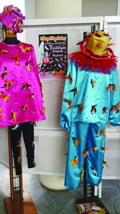 Τα γκρουπ και οι αντίστοιχες στολές, για τις οποίες ο καθένας μπορεί να πάρει πληροφορίες από το εκθετήριο, είναι οι εξής: "Με παρέσυρε το ρέμα Super Mario δεν είναι ψέμα", "Back to '60's", "Lord of the drinks", "Ψηλά το κεφάλι", "Η φτερού μεγαλειότις", "Ο Καραγκιόζης στην κρίση", "Σεληνιασμένοι", "Φιμπονάτσι", "Τρίτεκνοι με ροκ διάθεση", "Dubaneiros", "Tο συνεργείο των πολυτέκνων", "Νυφίτσες", "Ναύτες και αναύτρες", "Minions", "M & ms", "Black or white", "The Flintstones", "Ολα τα μωράκια στην πίστα", "Φανάρια", "Joker", "Κλαρινογαμπροί και κλαρινογκόμενες", "Εκτός εποχής", "The σκιαχτράσιανς", "Λούφες", "Τρελοκλόουν", "Ρόδα, τσάντα και κοπάνα", "Κοκκινοσκουφίτσα και κακός λύκος", "Γαλατικό χωριό", "Μεθυσμένοι κολασμένοι", "Τα κάναμε σαλάτα", "Η καλή, οι κακοί και ο άσχημος", "Τα φονικά κύματα", "Φρουτομπερδέματα".