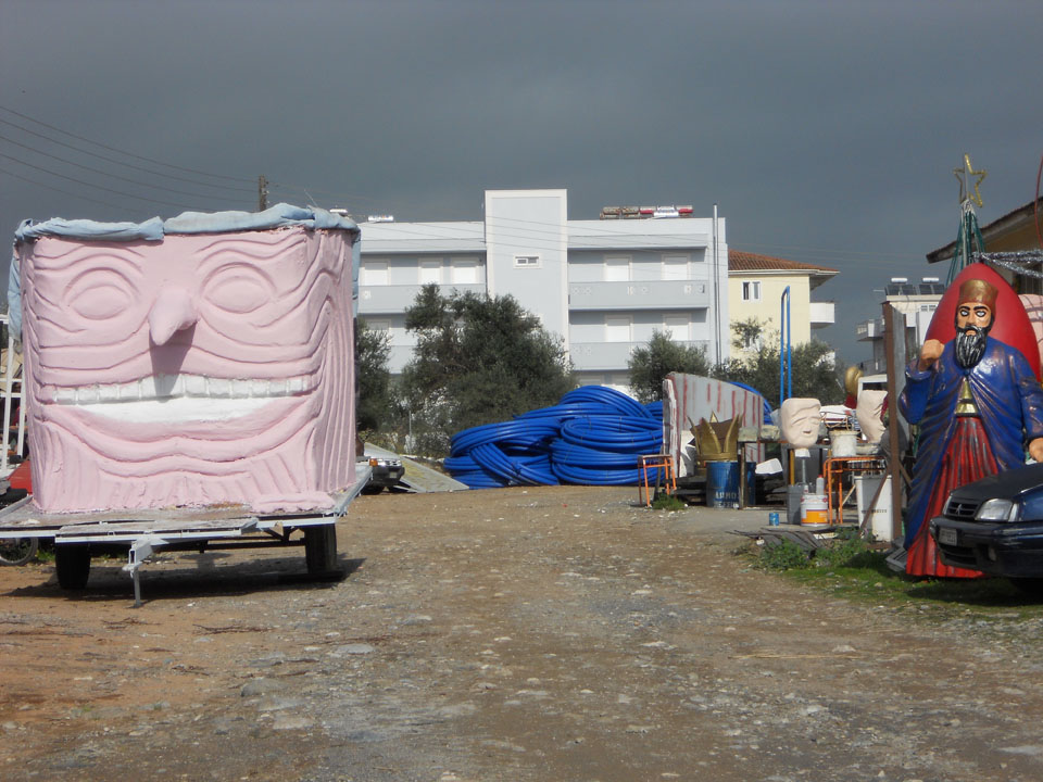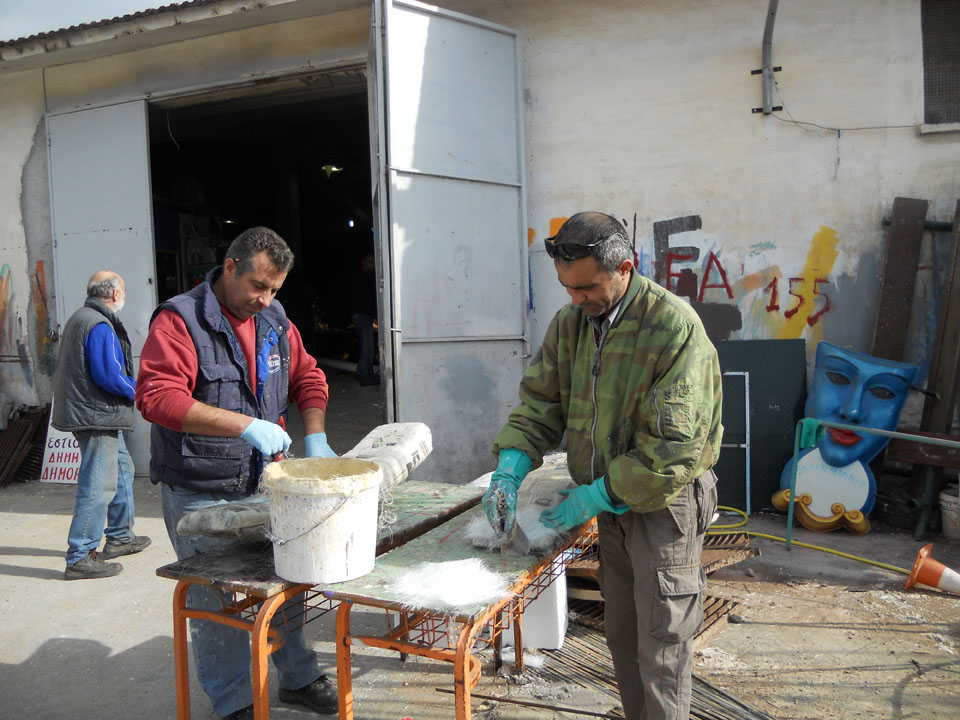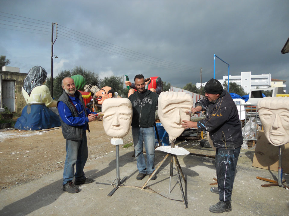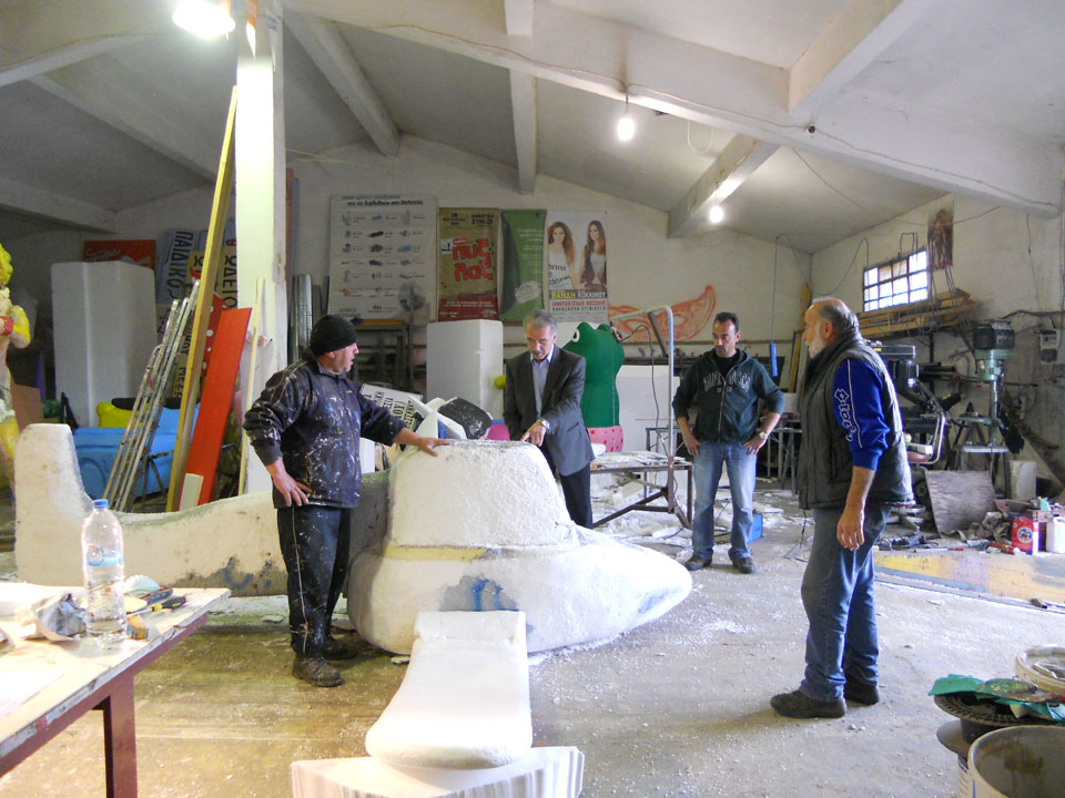 Βέβαια σε κάθε καρναβάλι η κορύφωση έρχεται με τη μεγάλη καρναβαλική παρέλαση - και εκεί κυριαρχούν τα άρματα. Κι αν υπάρχει ένας άνθρωπος ο οποίος το γνωρίζει καλύτερα από τον καθένα είναι ο πρωτομάστορας στο εργαστήρι των αρμάτων, Θωμάς Αλοιμένος. Οπως παραδέχεται "χρειάζεται πολλή δουλειά, πρέπει να υπάρχει αγάπη και μεράκι γι' αυτό που κάνουμε, θέλει τρέλα και φαντασία". Θέλει πραγματικά... τρέλα και μεράκι να φτιάξεις από φελιζόλ, υαλόπανο και πολυεστέρα ό,τι φανταστεί το μυαλό σου. Ακόμη κι αν αυτό που κατασκευάζεις βασίζεται πάνω σε παλιότερα άρματα, που με αυτό τον τρόπο ανακυκλώνονται και εξοικονομούνται υλικά και χρήματα. Ενώ άλλες φορές, κάποια παλιά άρματα δανείζονται σε καρναβαλιστές από άλλους δήμους για τις παρελάσεις, και μετά επιστρέφονται. Για αυτά που φτιάχνονται από την αρχή, "για μια απλή κατασκευή χρειάζονται 3 - 4 ημέρες, ενώ για μια πιο σύνθετη μια εβδομάδα με 8 ημέρες", λέει ο κ. Αλοιμένος. Διευκρινίζει μάλιστα ότι "δεν ασχολούμαστε όλοι με ένα άρμα, αλλά γίνονται παράλληλες κατασκευές". Κάθε χρόνο λοιπόν, "προσπαθούμε να κάνουμε κάτι διαφορετικό, και φέτος προσπαθούμε κάτι καλύτερο από πέρυσι, για να φανούμε αντάξιοι του κόσμου που περιμένει από εμάς να γελάσει και να ξεφύγει από την καθημερινότητα".