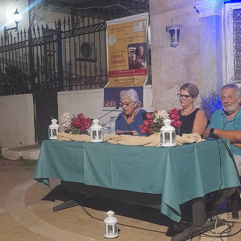 Η κ. Τσαμαδού, νομικός και συγγραφέας, παρουσίασε με ζωντάνια και όμορφο αφηγηματικό λόγο την εικόνα των Φιλιατρών το 1918, μέσα από τις αναμνήσεις του πατέρα της Γεώργιου Καλογερόπουλου, αρεοπαγίτη αλλά και καταξιωμένου λογοτέχνη με το ψευδώνυμο Θέμης Τριφύλλιος, μαθητή τότε του Γυμνασίου Φιλιατρών.