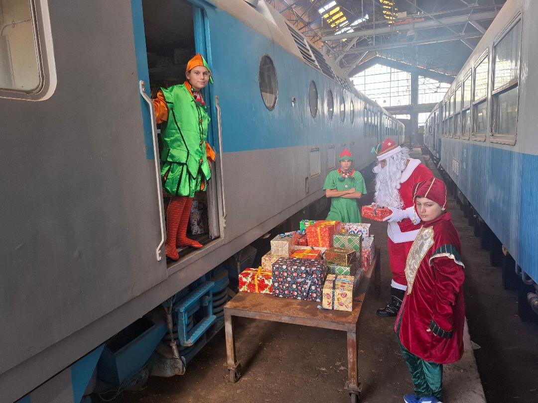 Στο χώρο του Σιδηροδρομικού Σταθμού θα στηθεί γιορτή με παιδικά δρώμενα με βασικό άξονα την ψυχαγωγία και τη βιωματική εμπειρία των παιδιών, τα οποία θα παραλάβουν το δώρο τους από τον Άγιο Βασίλη μετά την άφιξη της αμαξοστοιχίας. Τα παιδιά με τις οικογένειές τους θα έχουν την ευκαιρία μάλιστα να επιβιβαστούν στην αμαξοστοιχία για μια μικρή διαδρομή μέχρι την περιοχή Ακοβίτικα και επιστροφή στο Σιδηροδρομικό Σταθμό.