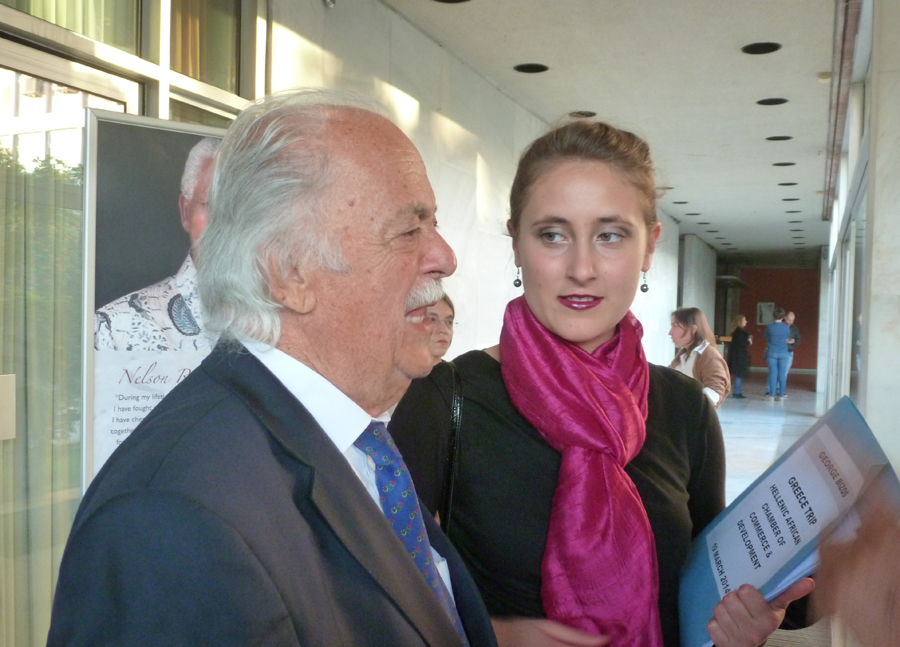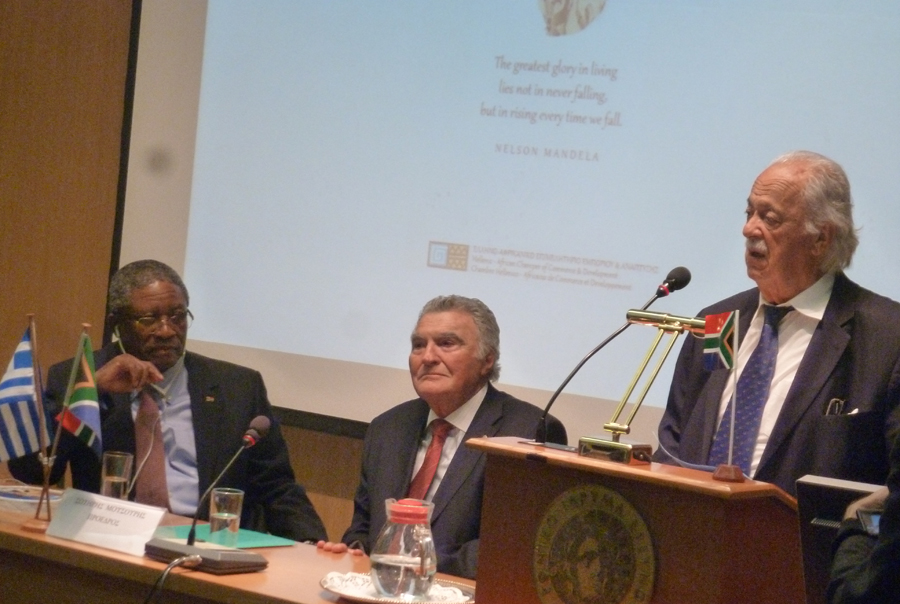 Η εκδήλωση ξεκίνησε με χαιρετισμό από τον Δημήτρη Μανιατάκη εκ μέρους του Ελληνοαφρικανικού Επιμελητηρίου Εμπορίου και Ανάπτυξης. Για το Γιώργο Μπίζο ανέφερε μεταξύ άλλων ότι είναι ο Ελληνας που πολέμησε στο πλευρό του Μαντέλα για την ελευθερία, τη δημοκρατία και την ισότητα. Είναι ο Ελληνας που συνέδεσε τη ζωή του με τη μοίρα του αφρικανικού λαού, είναι ο δικηγόρος που πολέμησε και νίκησε το απαρτχάιντ.