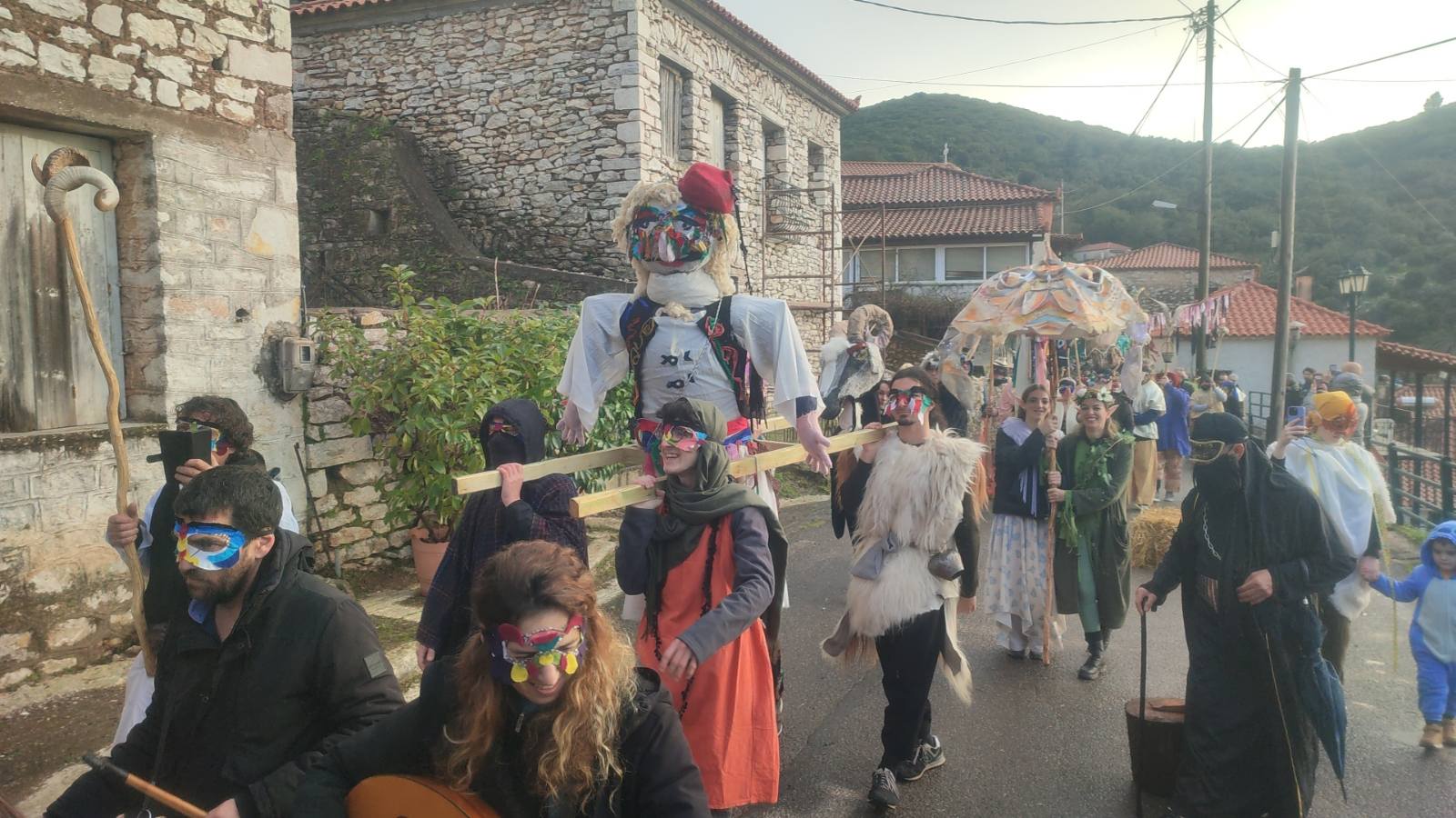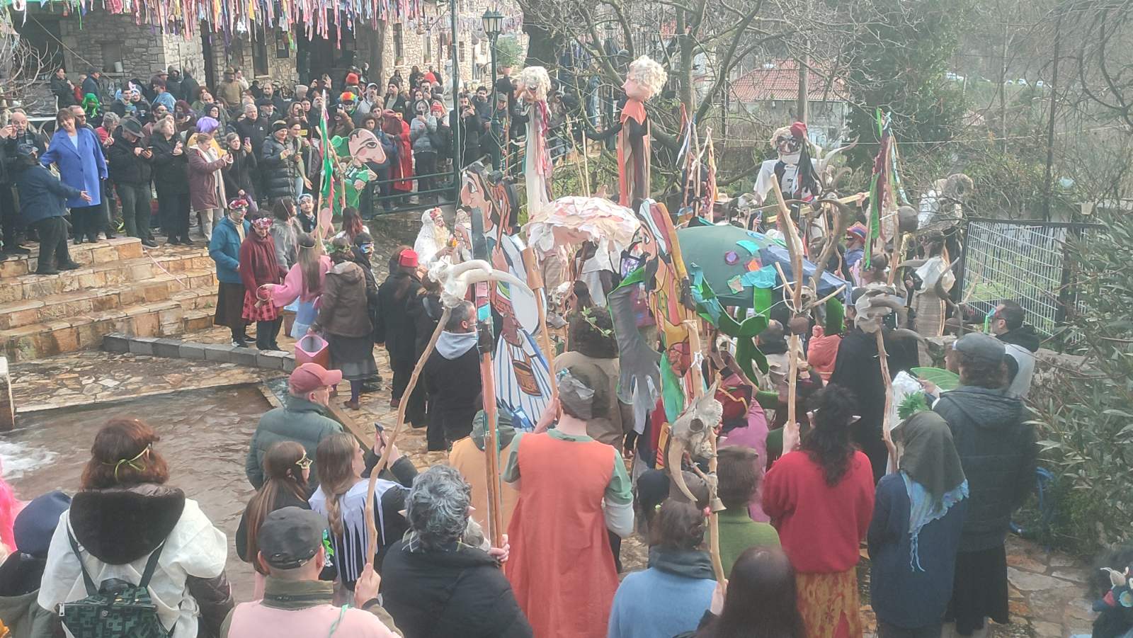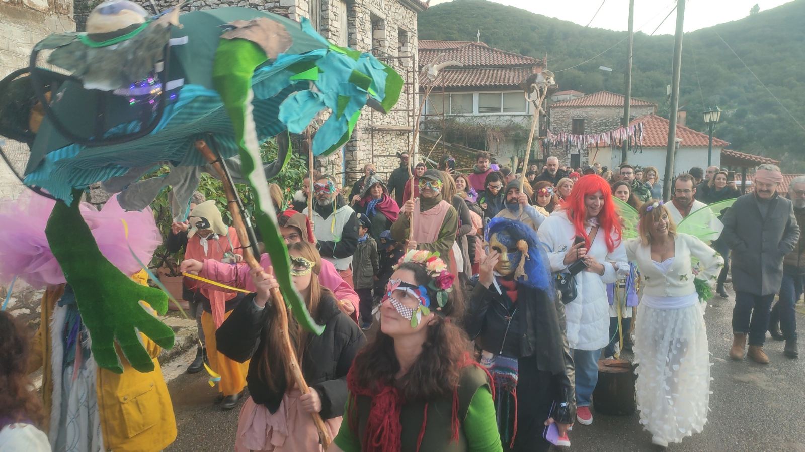 Σήμερα, οι δρόμοι γέμισαν μασκαράδες και «πλάσματα της βρύσης» στην Αντι-Παρέλαση, εμπνευσμένη από τις τοπικές αφηγήσεις για καβούρια, νεράιδες και στοιχειά που κατοικούσαν στα νερά. Το απόγευμα, ο Καρνάβαλος παραδόθηκε στις φλόγες δίπλα στη Μεγάλη Βρύση, σε ένα συμβολικό τελετουργικό πέρασμα από τον χειμώνα στη νέα ζωή.