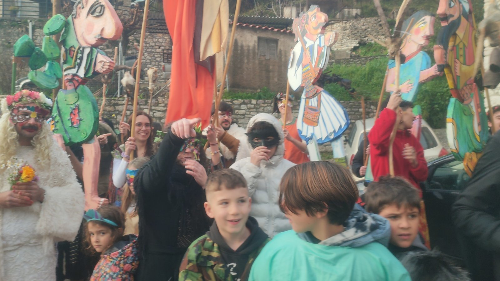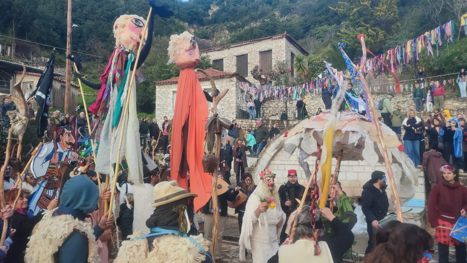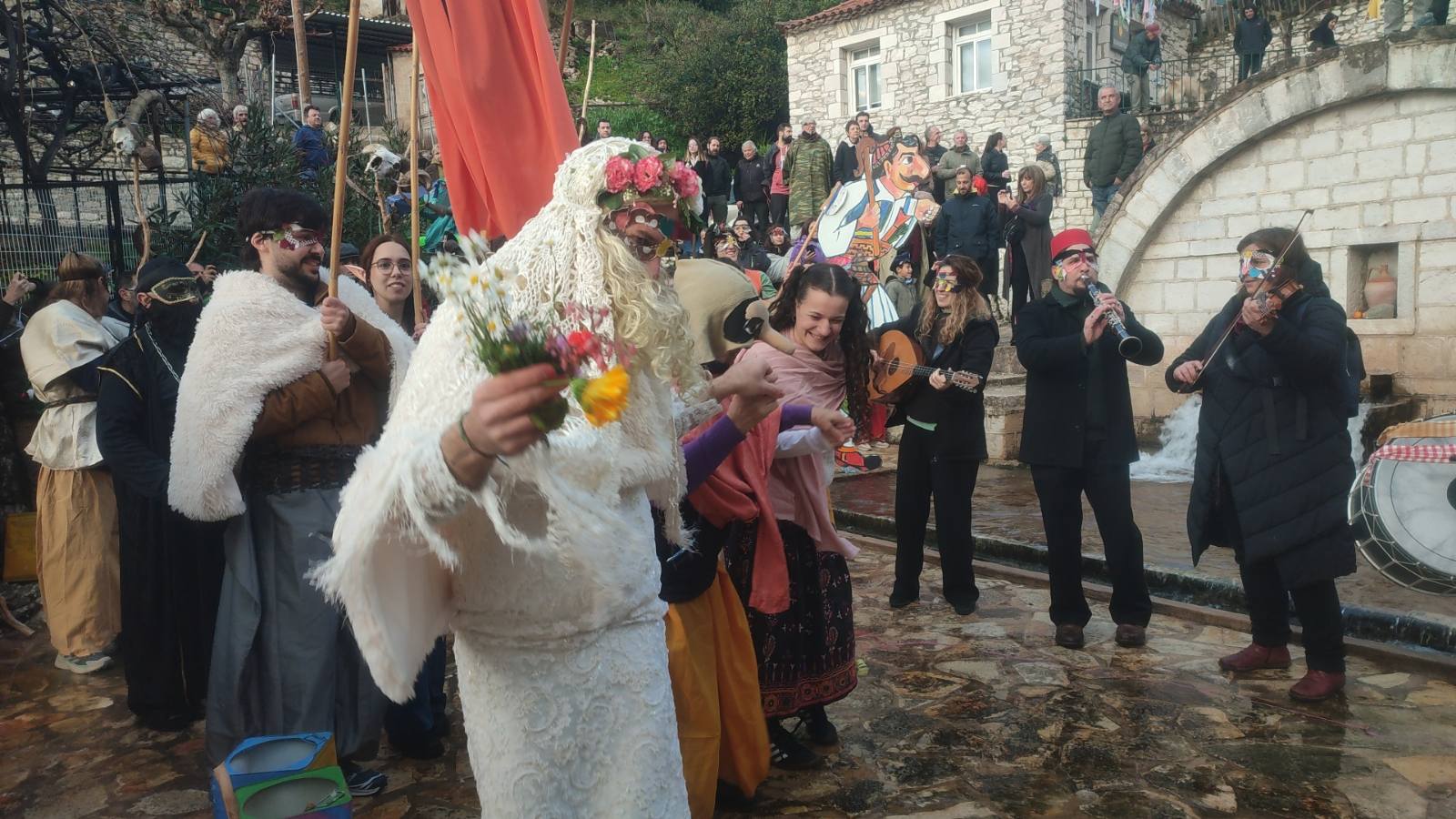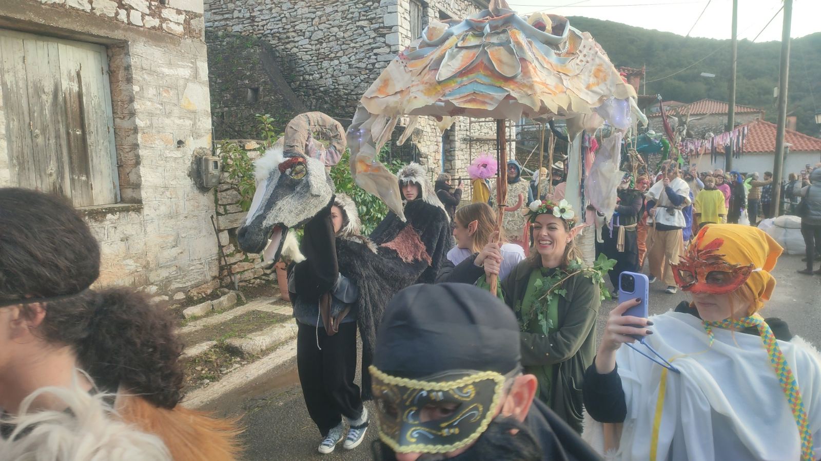 Σήμερα, οι δρόμοι γέμισαν μασκαράδες και «πλάσματα της βρύσης» στην Αντι-Παρέλαση, εμπνευσμένη από τις τοπικές αφηγήσεις για καβούρια, νεράιδες και στοιχειά που κατοικούσαν στα νερά. Το απόγευμα, ο Καρνάβαλος παραδόθηκε στις φλόγες δίπλα στη Μεγάλη Βρύση, σε ένα συμβολικό τελετουργικό πέρασμα από τον χειμώνα στη νέα ζωή.
