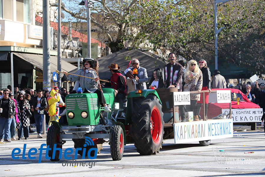 Η μεγάλη καρναβαλική παρέλαση ξεκίνησε από την κεντρική πλατεία Μεσσήνης, με τον Βασιλιά Καρνάβαλο να απευθύνει τον βαρυσήμαντο λόγο του. Άρματα, γκρουπ και εκατοντάδες καρναβαλιστές δημιούργησαν μια εορταστική ατμόσφαιρα, με τον κόσμο να συμμετέχει ενεργά.