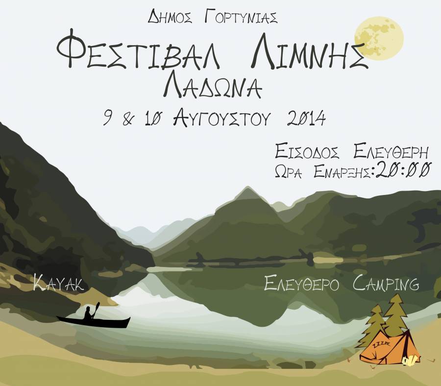 Το Φεστιβάλ Λίμνης Λάδωνα θα γίνει φέτος στις 9 και 10 Αυγούστου. Η διοργάνωση επιστρέφει για 2η χρονιά, στο πλαίσιο των πολιτιστικών εκδηλώσεων του Δήμου Γορτυνίας και προσκαλεί τον κόσμο να γιορτάσει την αυγουστιάτικη πανσέληνο με μουσική και να διανυκτερεύσει στην ειδυλλιακή αρκαδική λίμνη.