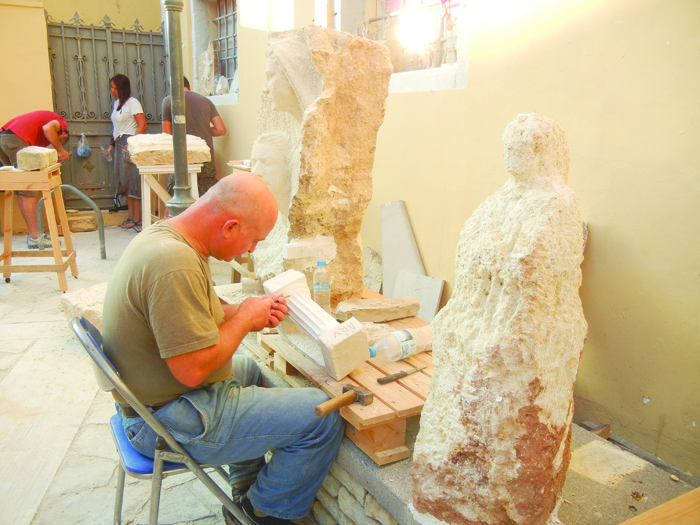 Οπως είπε ο κ. Γκούζος, η ανταπόκριση του κόσμου σε αυτή τη δραστηριότητα ήταν και είναι εντυπωσιακή. Οι περαστικοί βλέπουν πώς η πέτρα παίρνει μορφή, σιγά-σιγά. Ανθρωποι όλων των ηλικιών, ξένοι και Ελληνες, ρωτάνε να μάθουν, δίνουν συγχαρητήρια στους δημιουργούς. Το υλικό που χρησιμοποιείται είναι μεσσηνιακό, από ένα αρχαίο λατομείο στην Ανδρούσα και το έχει κάνει δωρεά ο Γ. Γιαννακόπουλος. Ολα τα έργα θα εκτεθούν ολοκληρωμένα στις 10 Αυγούστου στην πανσέληνο, την Παγκόσμια Ημέρα Μουσείων.