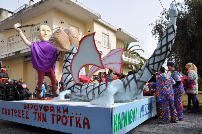 Μικροί και μεγάλοι ξεφάντωσαν στους δρόμους της Μεσσήνης για μία ακόμα χρονια στους γιορτινούς ρυθμούς του βασιλιά Καρνάβαλου, ενώ από τα άρματα που παρέλασαν δεν έλειψαν όπως κάθε χρόνο και οι... πινελιές από την πολιτική επικαιρότητα.